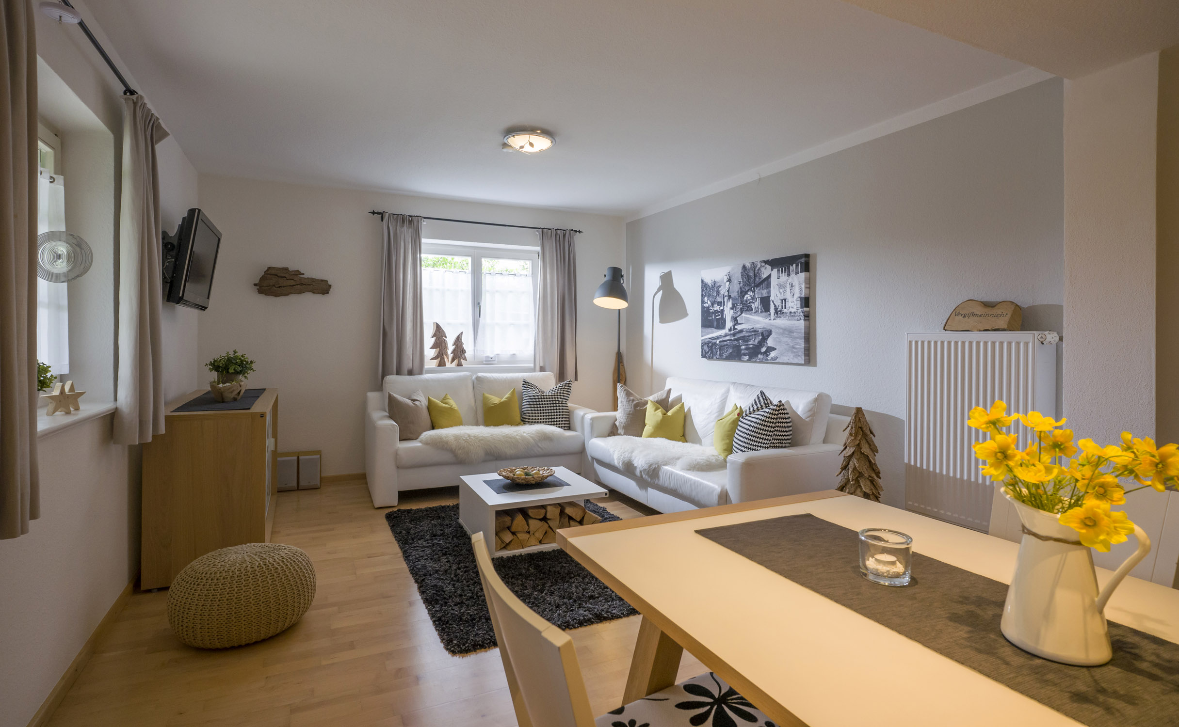 Die 80 qm große Ferienwohnung Wildbarren ist modern, hell und freundlich, mit viel Liebe zum Detail eingerichtet. Sie verfügt über zwei Schlafzimmer mit je einem eigenen separaten Badezimmer. Über einen direkten Zugang zum Garten können Sie sich in einer gemütlichen Sitzecke ausruhen und entspannen. Im gesamten Haus steht Ihnen ein kostenloser Internetzugang mittels W-LAN zur Verfügung.