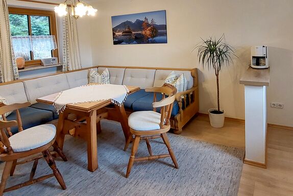 Ihr Traumurlaub in unserem familiär geführten Haus, in sehr ruhiger, zentraler Ortslage mit herrlichem Blick auf die Ramsauer Berge. Helle behagliche, komfortable Ferienwohnungen. Grill, Sauna, Fitnessraum, Infrarot-Kabine, solarbeheizter Privat-Pool (geöffnet von Mitte Mai - Mitte September), Liegewiese, Spielplatz für Kinder.