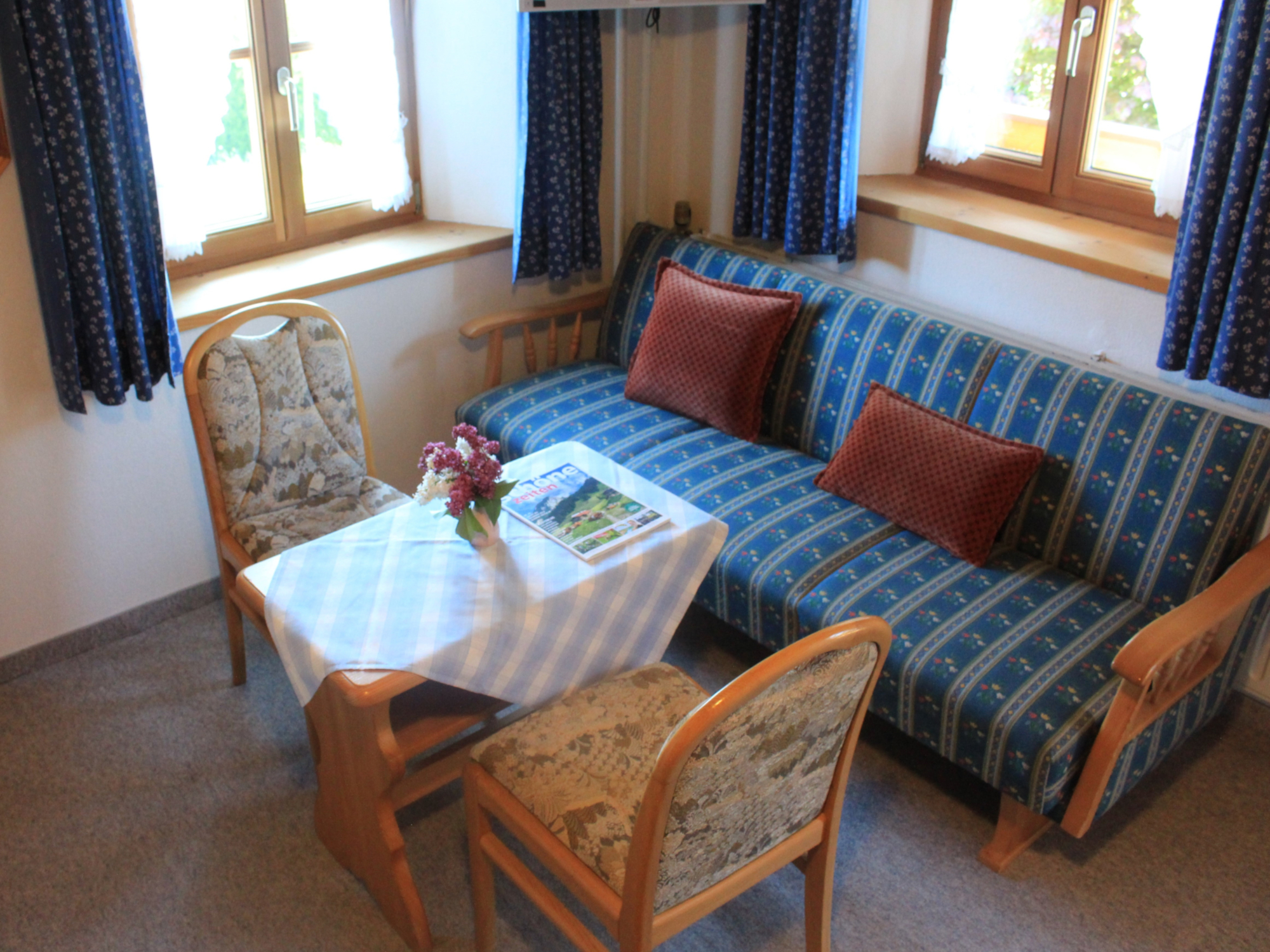 Das Dreibettzimmer mit Balkon liegt zur Gartenseite und bietet einen herrlichen Blick auf die Hausberge. Ausgestattet ist es mit einem Doppelbett (Größe 2m x 2m im Fußbereich geschlossen), einem Dreitürigen Schrank, sowie einem Schlafsofa, welches für 1 Kind geeignet ist. Eine Sitzecke mit 2 Stühlen und kleinem Tisch lädt zum Verweilen ein. Die Möbel sind Nachhaltige Vollholz Möbel mit spuren der Zeit.d as Bad ist mit Dusche/WC , Föhn, und Fenster ausgestattet. Die Möbel sind Nachhaltige Vollholz Möbel mit spuren der Zeit. WLAN ist vorhanden.