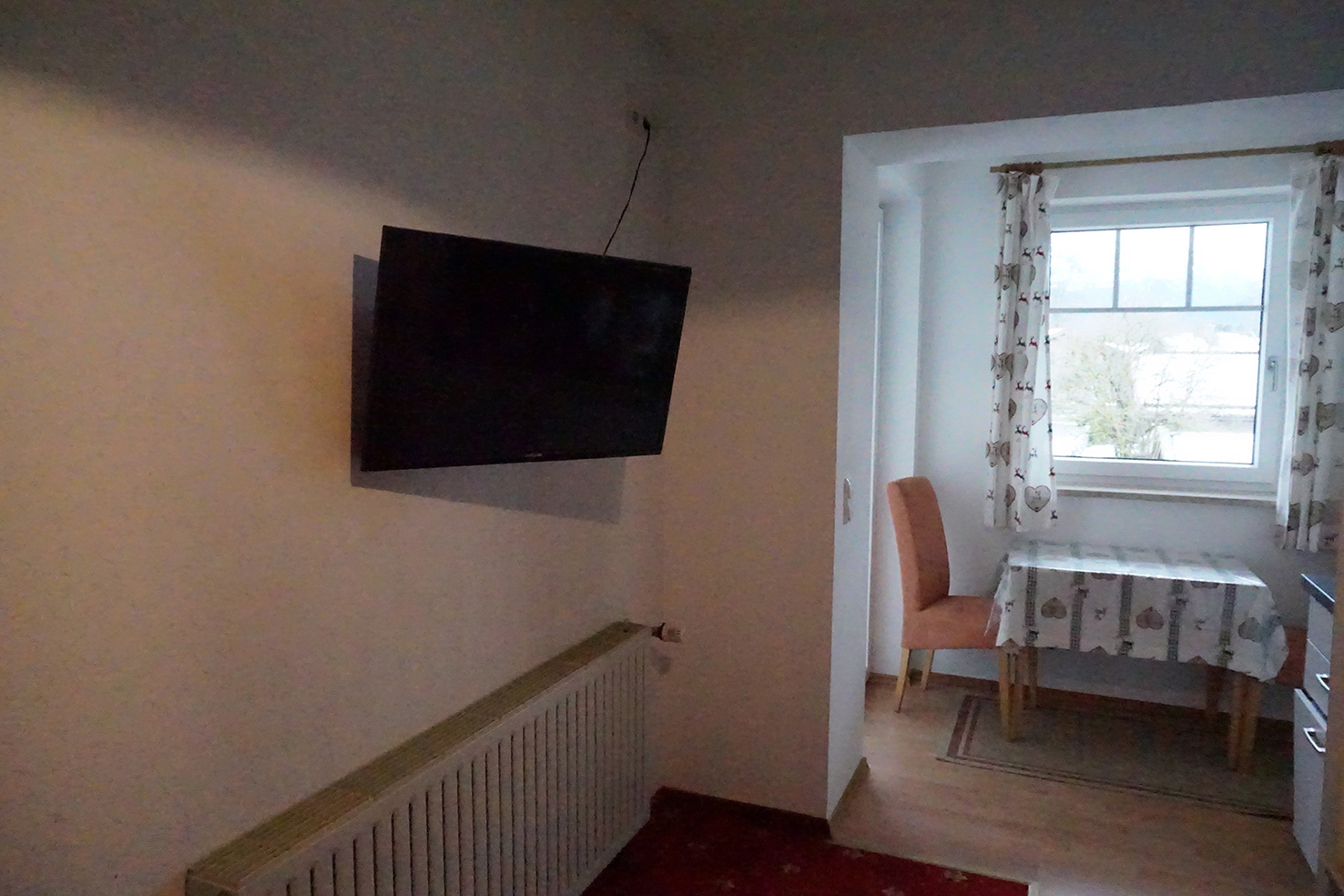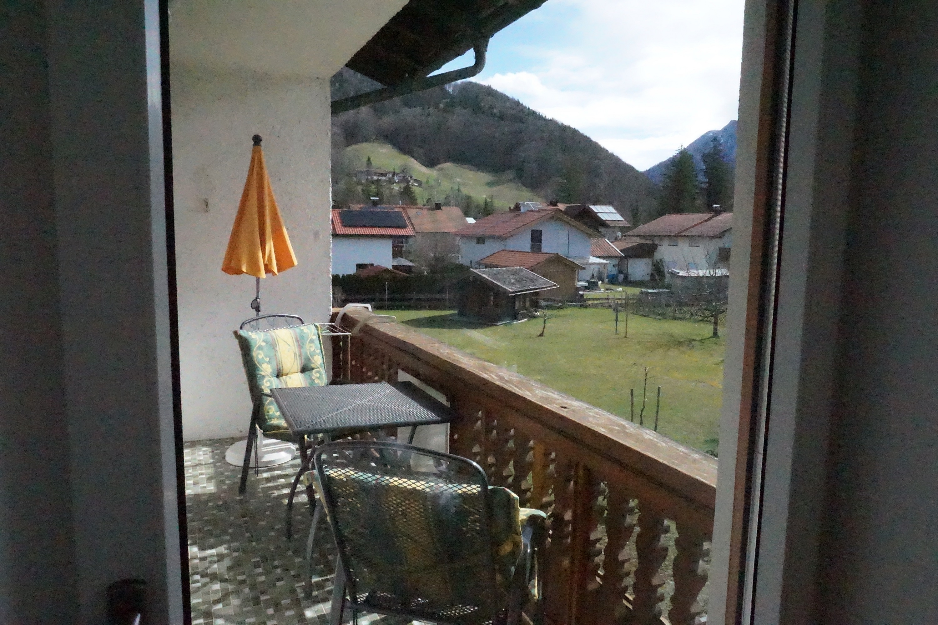 Behagliche und komfortable Ferienwohnung hübsch möbliert für 1-2 Personen in Süd-OstLage auf der Bel-Etage im 1. Obergeschoss mit einzigartigem Bergblick auf die Wittelsbacher Höhe im Osten und traumhaftem Blick auf das majestätische Ruhpoldinger Bergpanorama im Süden durch neue Panoramafenster, klein aber fein, Wohnzimmer mit Rundcouch, Flachbild-TV (Kabel), neue Einbauküche mit Mikrowelle, Dunstabzug, und Geschirrspüler, Essplatz mit Panoramablick nach Süden, separates Schlafzimmer mit Doppelbett, Dusche/WC, Haartrockner, Gästeartikel, Einzelbalkon nach Süden mit Sitzmöbeln in Form einer geschützten Loggia. Auch für 4 Personen buchbar gemeinsam mit der Ferienwohnung Sonntagshorn mit Verbindungstüre.