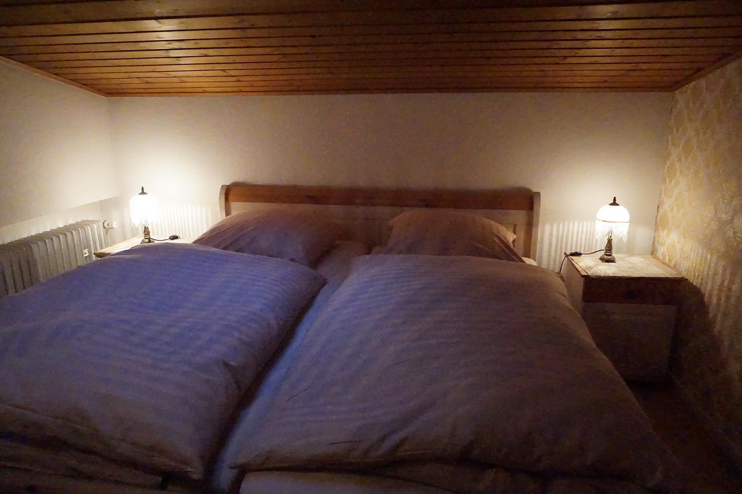 Penthouse-feeling im zweiten Obergeschoss, das ganze Stockwerk für sich alleine, 2 Balkone, traumhafter Bergblick auf die Wittelsbacher Höhe vom Ostbalkon/Loggia, atemberaubende Aussicht auf das majestätische Ruhpoldinger Bergpanorama vom Südbalkon/Loggia. Die Ferienwohnung verfügt über drei separate Schlafzimmer: ein Schlafzimmer mit Doppelbett 180 x 200 cm, Zugang zum Ostbalkon, ein Schlafzimmer mit französischem Bett, 160 x 200 cm und Duschbad en Suite, 1 Einzelzimmer mit Boxspringbett 120 x 200 cm und Zugang zum Ostbalkon. Ein weiteres Duschbad getrennt nach Dusche und WC mit Waschbecken, Haartrockner sowie Gästeartikeln ist vom Flur aus zugänglich. Das großzügige Wohn- Esszimmer mit Panoramafenster ist nach Süden ausgerichtet mit Schlafcouch (140 cm breit), Sessel, Eckbank, Ausziehtisch mit Sitzmöglichkeiten für mindestens 6 Personen, Flachbild-TV (Kabel) und Zugang zum Südbalkon, Einbauküche mit Geschirrspülmaschine, Backofen, Herd mit Ceranfeld, Dunstabzug, Kühlschrank mit Gefrierfach.
