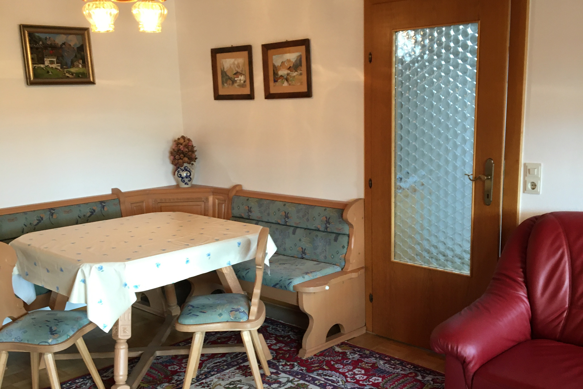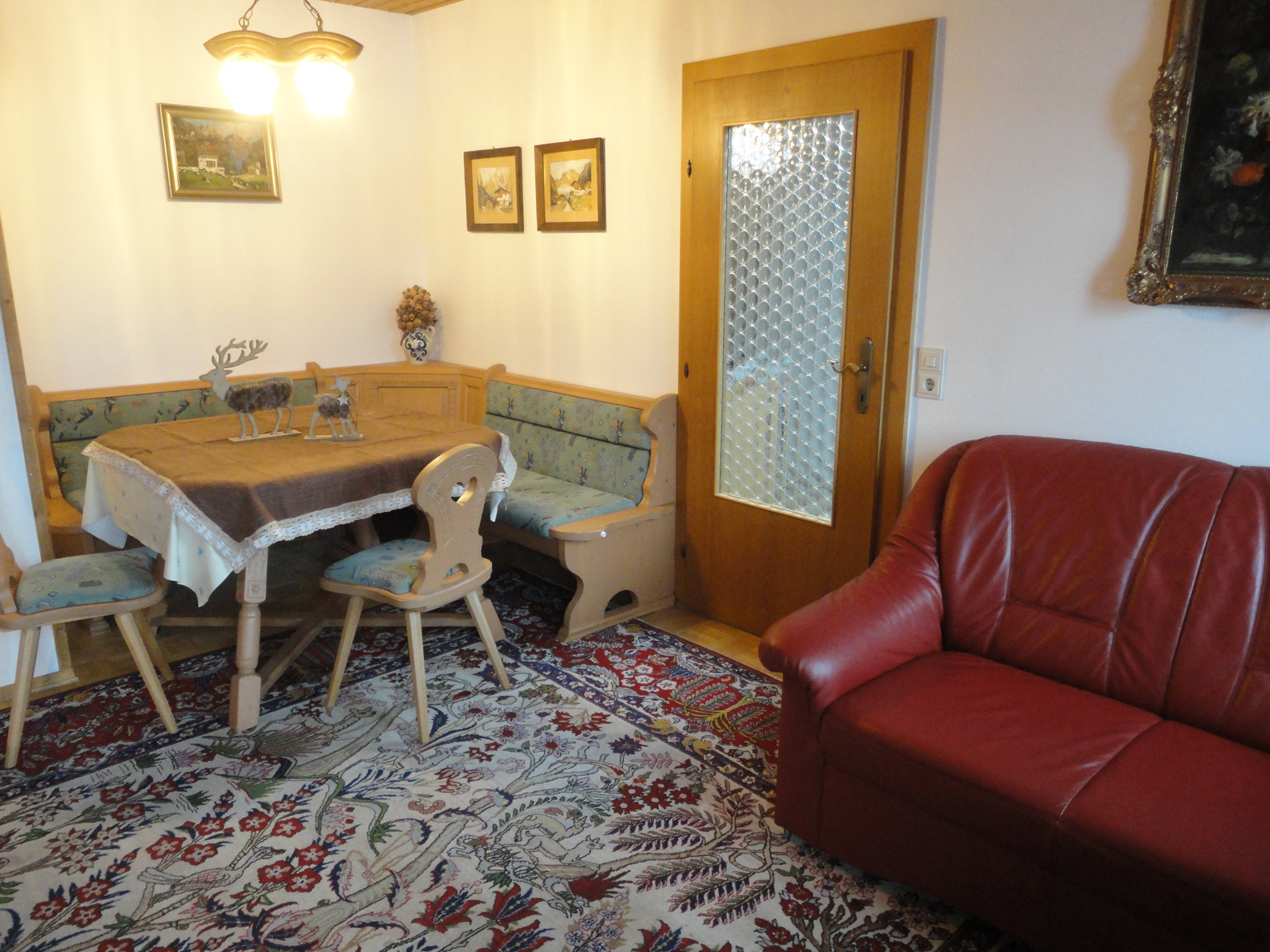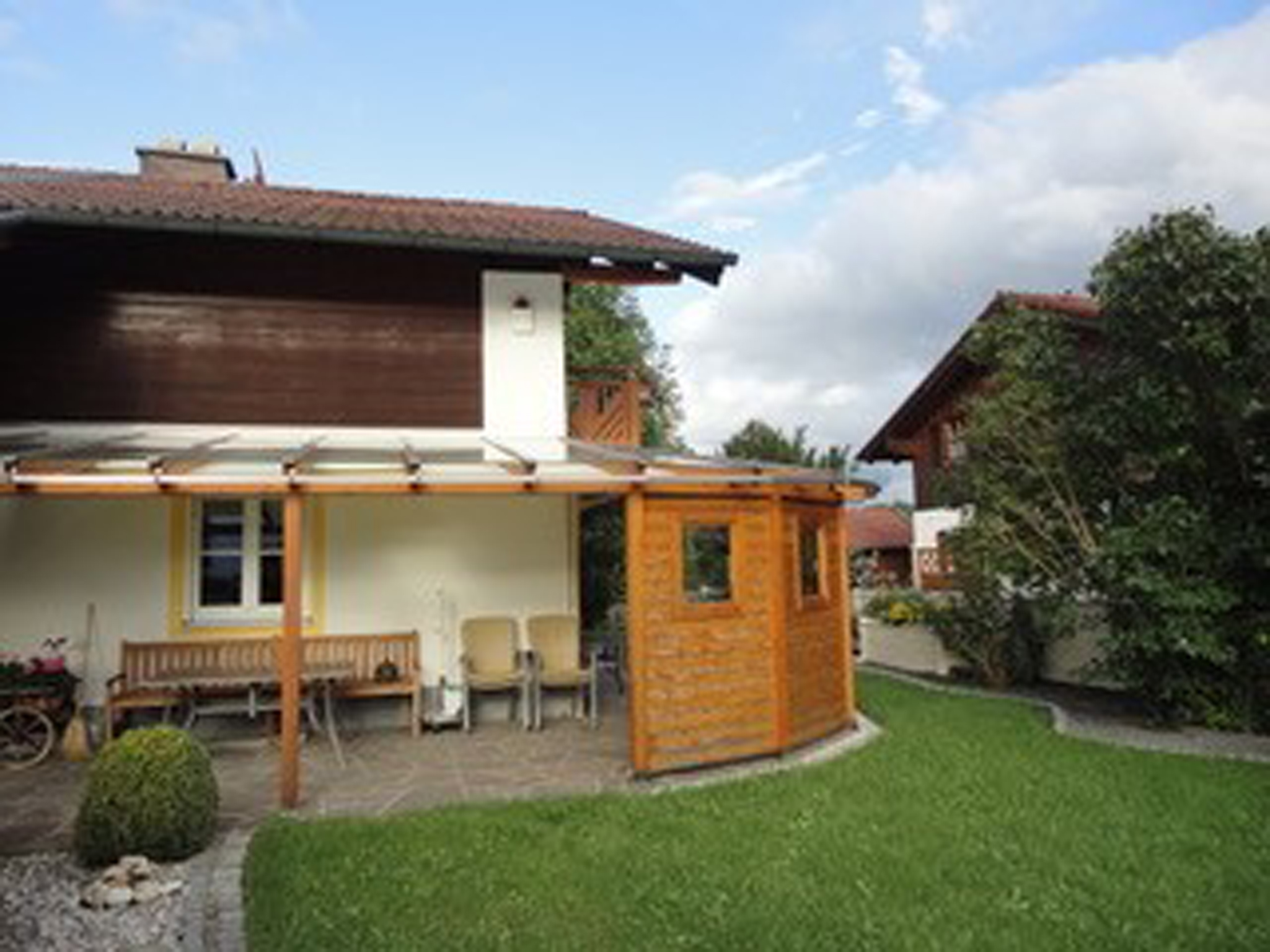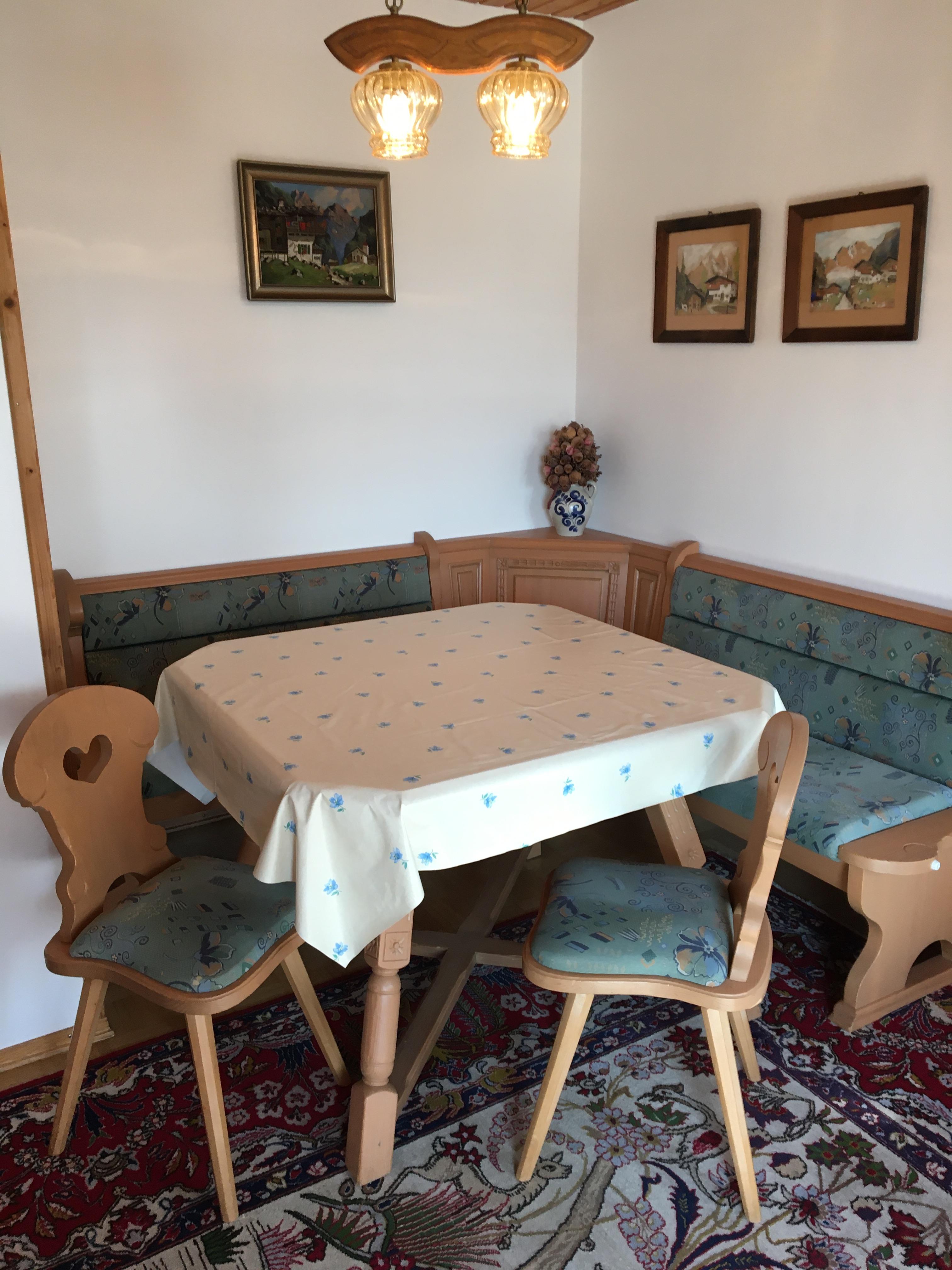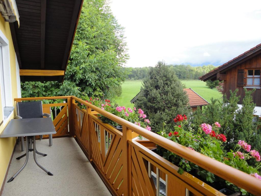 Großzügige, schöne Ferienwohnung (90 qm) in sehr sonniger ruhiger Lage mit traumhaftem Bergblick. Die Wohnung wurde frisch renoviert. Unsere Wohnung für maximal 4 Personen im Obergeschoss ist bestens ausgestattet. 2 große Schlafzimmer, Wohnzimmer mit Essecke und 2 Sofas,TV, Küche extra, Tageslichtbad mit Badewanne, Dusche und WC, freies W-LAN. Der Balkon mit elektrischer Markise ist möbliert. Es ist alles vorhanden, was zu einer gemütlichen Wohnung gehört. Ein Kinderbett und Hochstuhl kann gestellt werden. Überdachter Parkplatz auf dem Grundstück. Wir freuen uns auf Ihr Kommen!