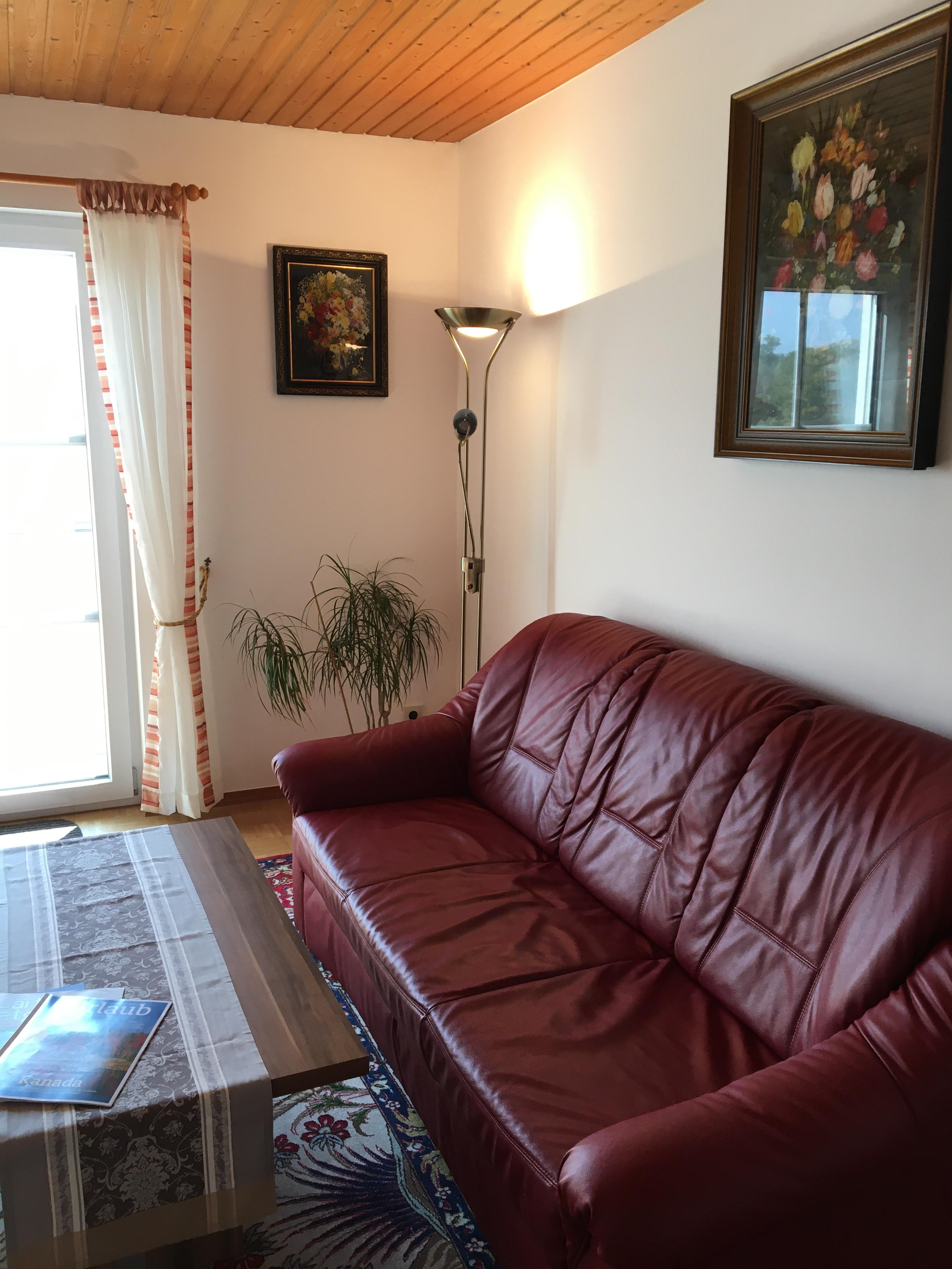 Großzügige, schöne Ferienwohnung (90 qm) in sehr sonniger ruhiger Lage mit traumhaftem Bergblick. Unsere Wohnung für maximal 4 Personen im Obergeschoss ist bestens ausgestattet. 2 große Schlafzimmer, Wohnzimmer mit Essecke und 2 Sofas, Küche extra, Tageslichtbad mit Badewanne, Dusche und WC, TV, freies W-LAN, Balkon mit elektrischer Markise und was sonst noch zu einer gemütlichen Wohnung gehört ist vorhanden. Kinderbett und Hochstuhl kann gestellt werden. Überdachter Parkplatz auf dem Grundstück. Wir freuen uns auf Ihr Kommen!