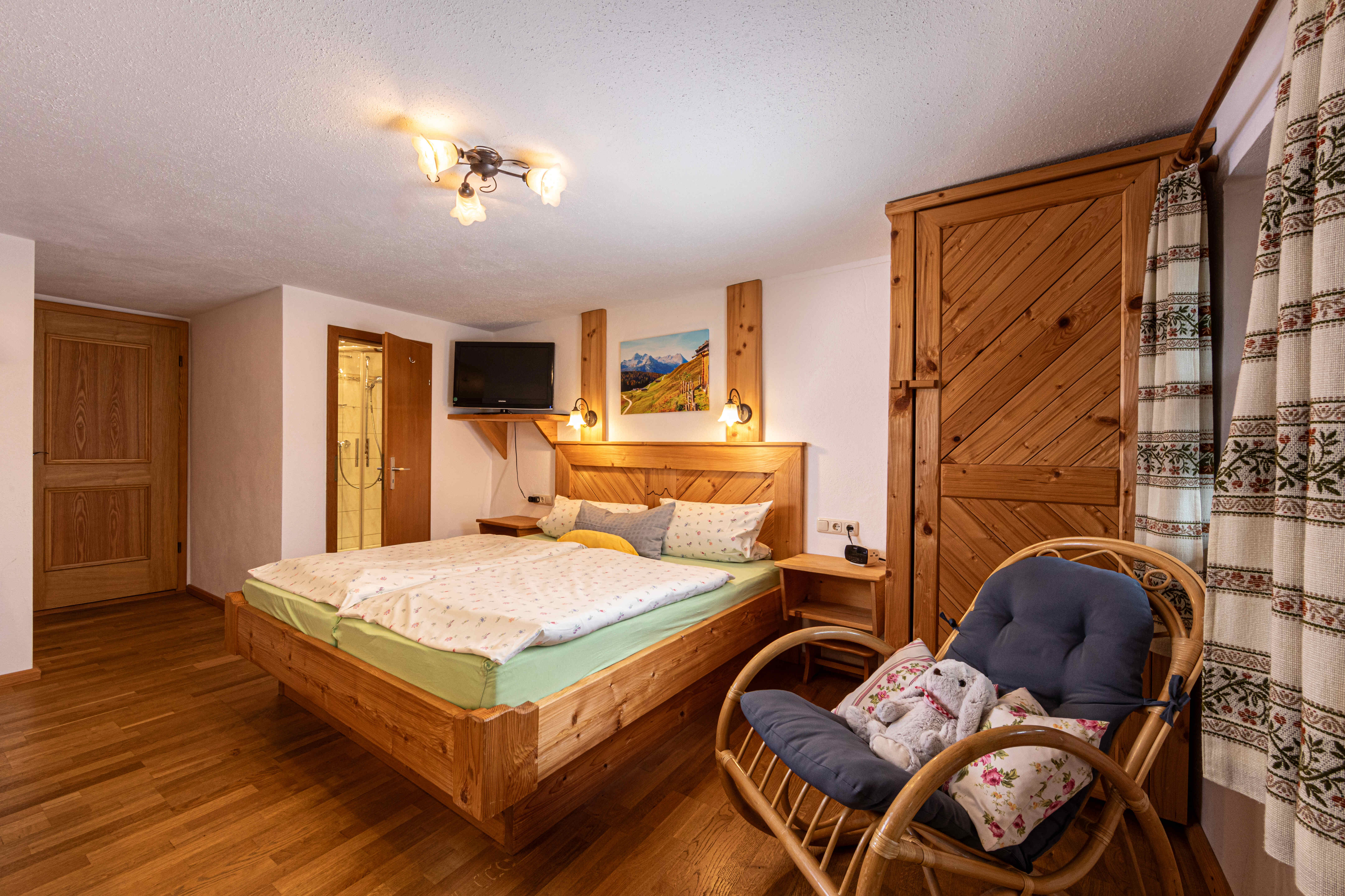 Alle Zimmer verfügen über Dusche/WC, Fön, Betten (Länge 2m), Radiowecker, großen Flat-TV, Safe, Kühlschrank, zum Teil Mini-Stereoanlage. Alle Zimmer haben Balkon mit Blick auf die Berge.
