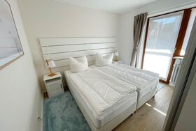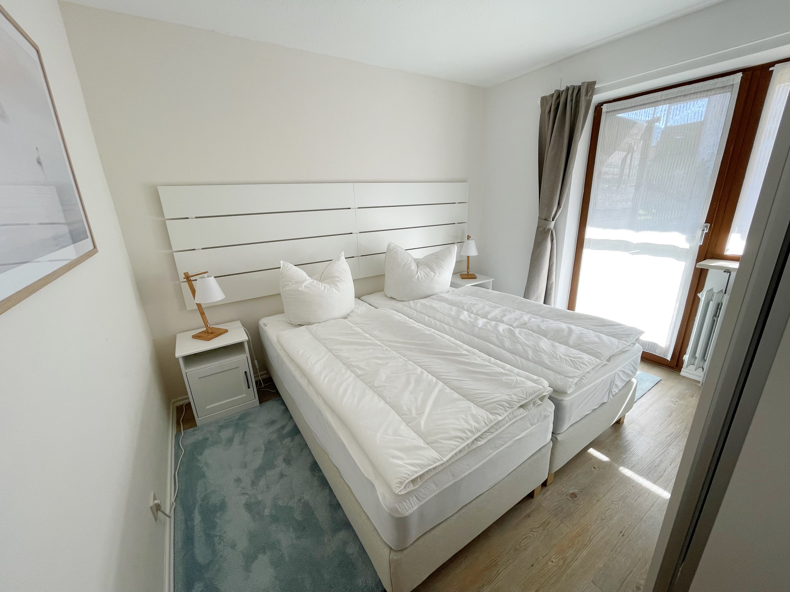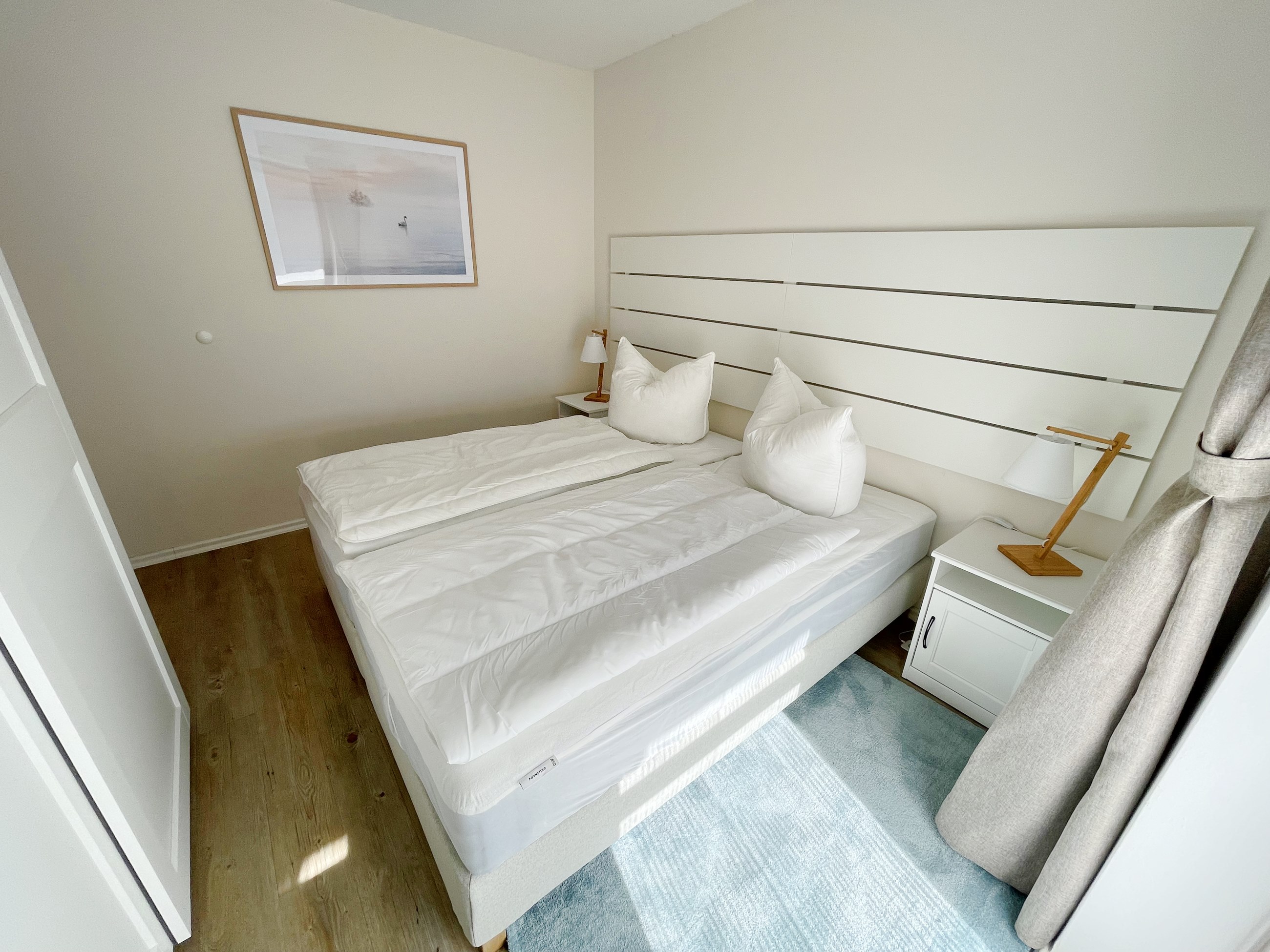 Herrlich schlafen lässt es sich in den beiden gemütlichen Schlafzimmern, von denen eines mit einem großen Doppel-Boxspringbett und das andere mit zwei getrennten Boxspringbetten ausgestattet ist.