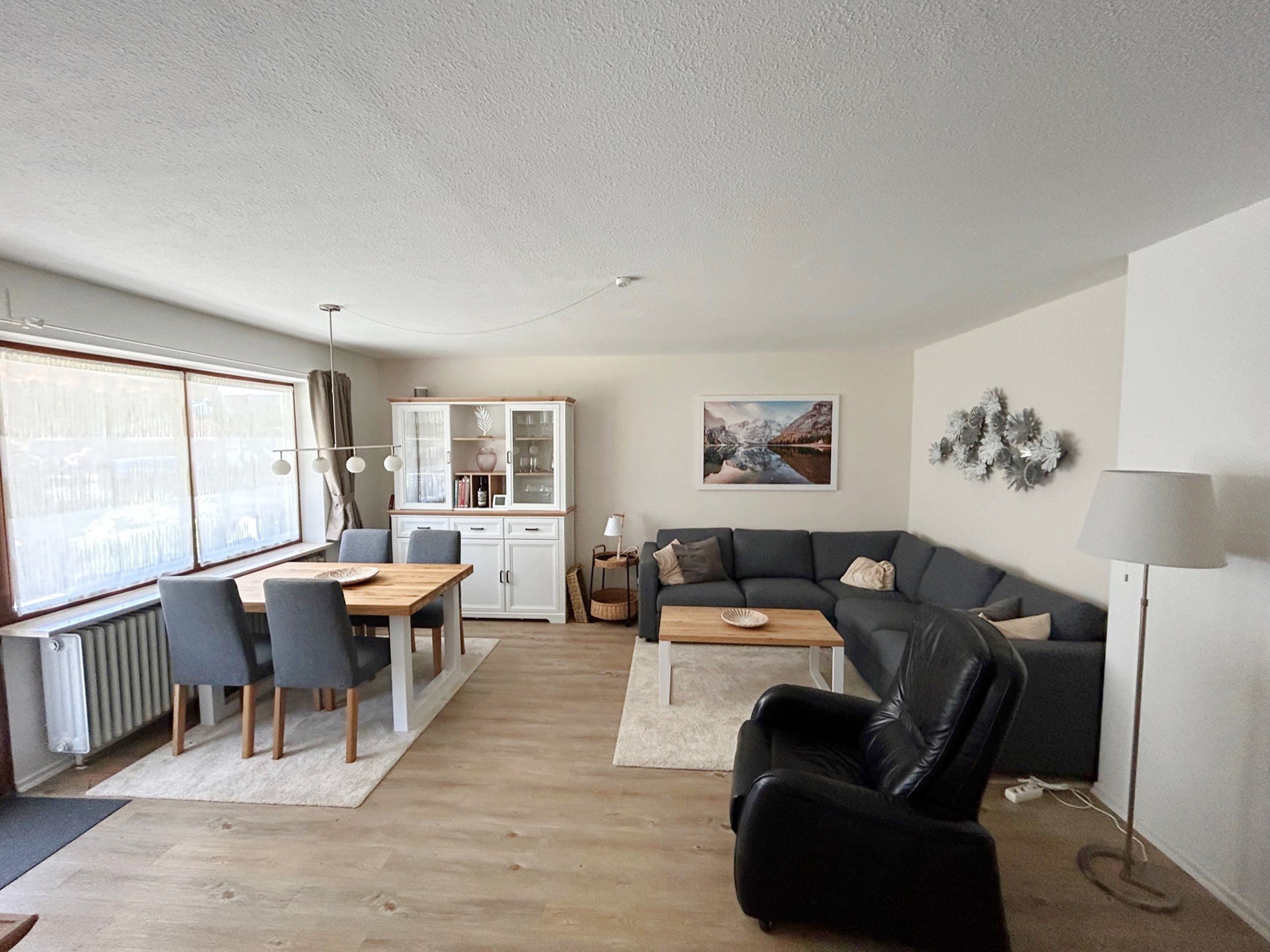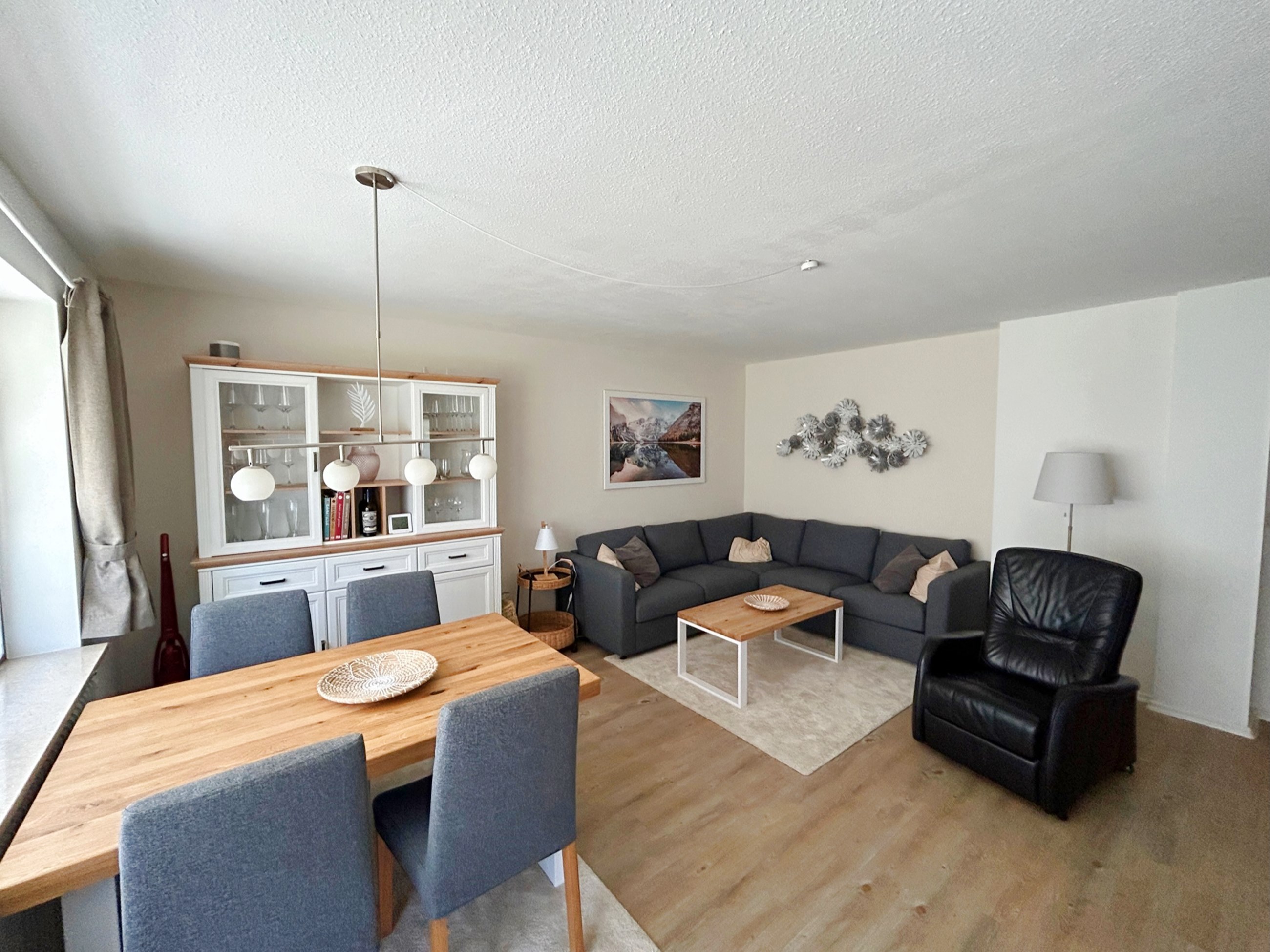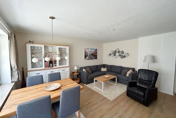 Die Ferienwohnung ist eine 70qm große 3-Raumwohnung mit zwei getrennten Schlafräumen und einem extra Wohnraum mit gemütlicher Wohnlandschaft, elektrisch verstellbarem Fernsehsessel, rustikalem Esstisch, der 4 Personen Platz bietet, großem Flachbild-TV sowie kostenfreiem WLAN.