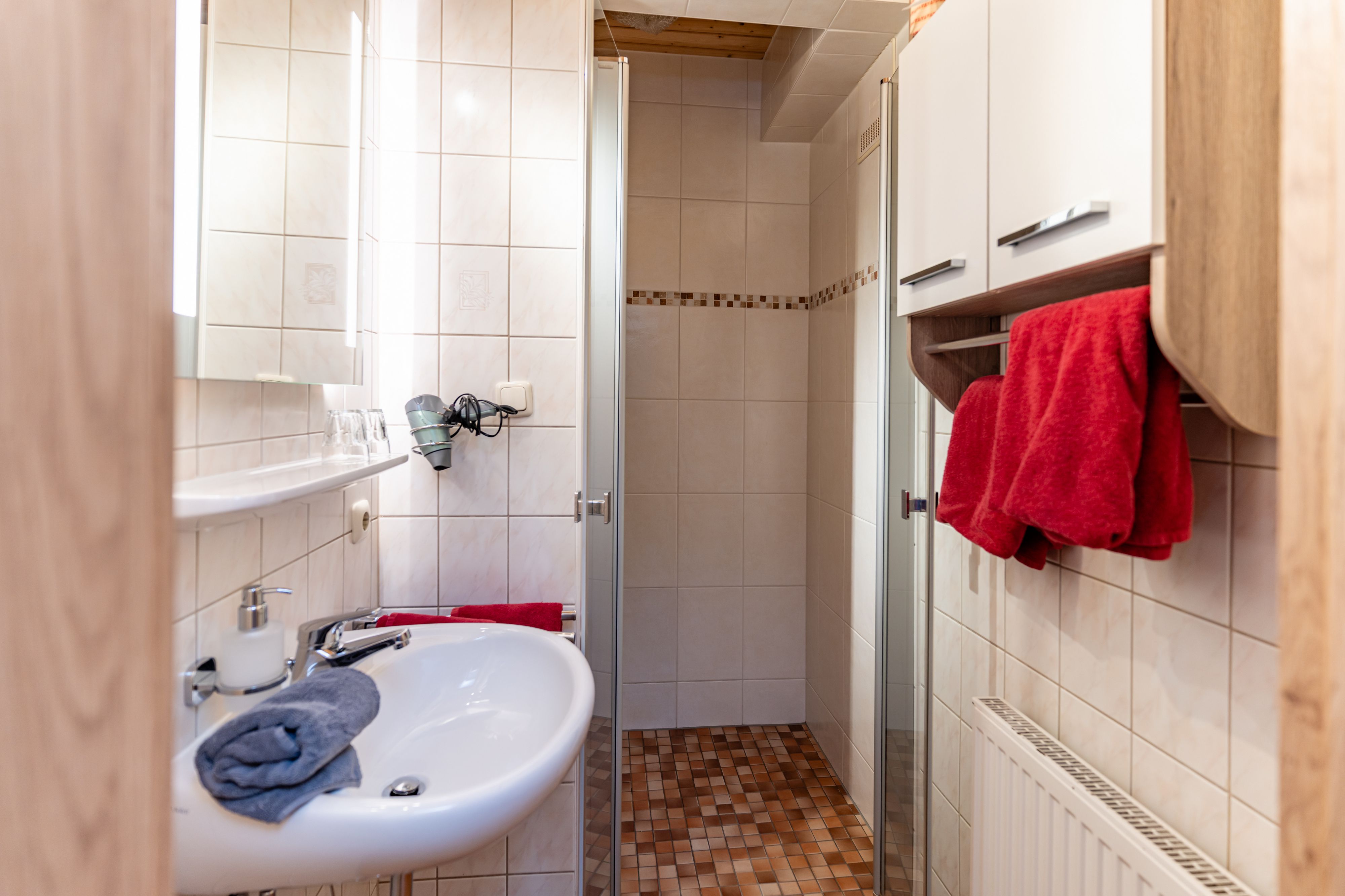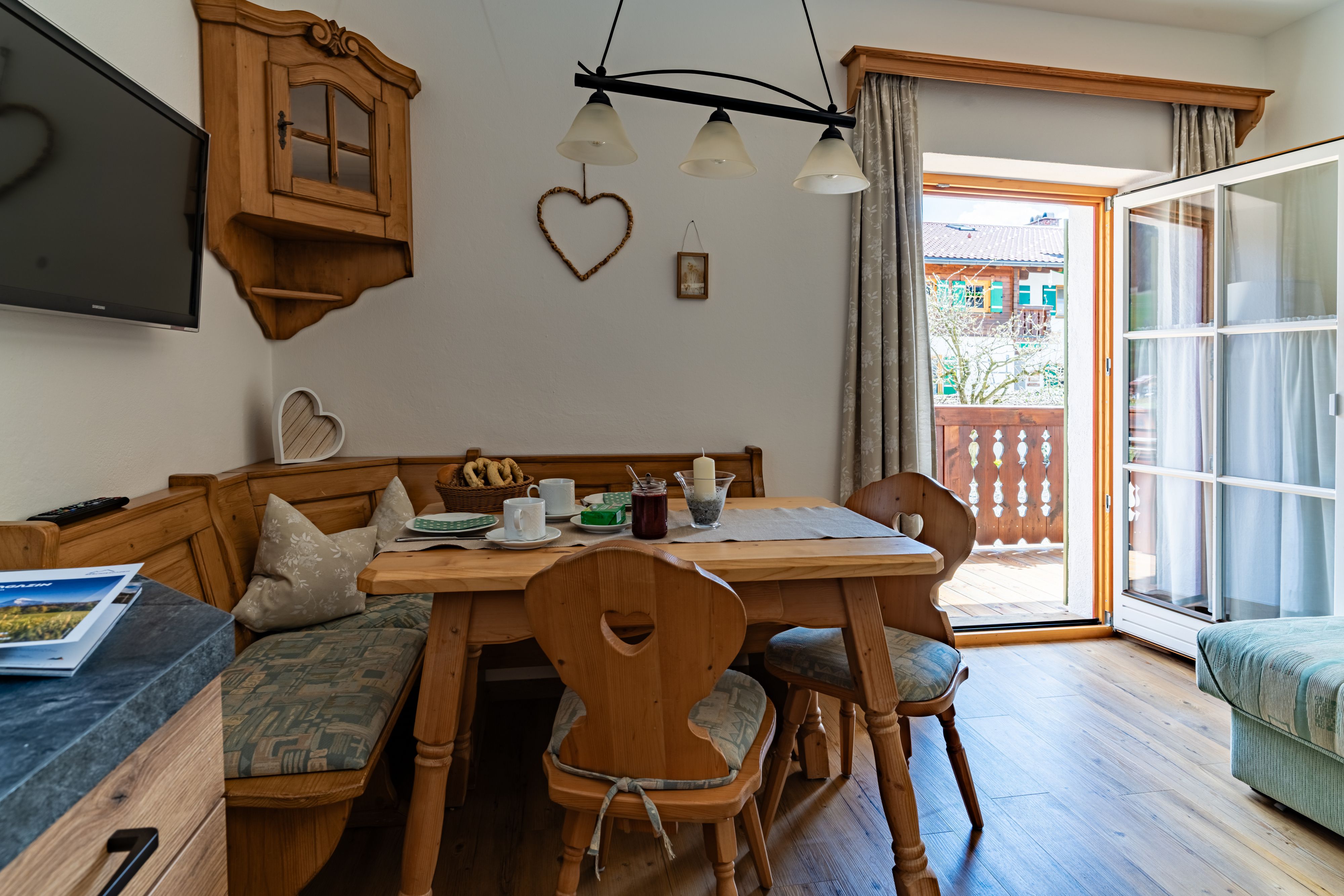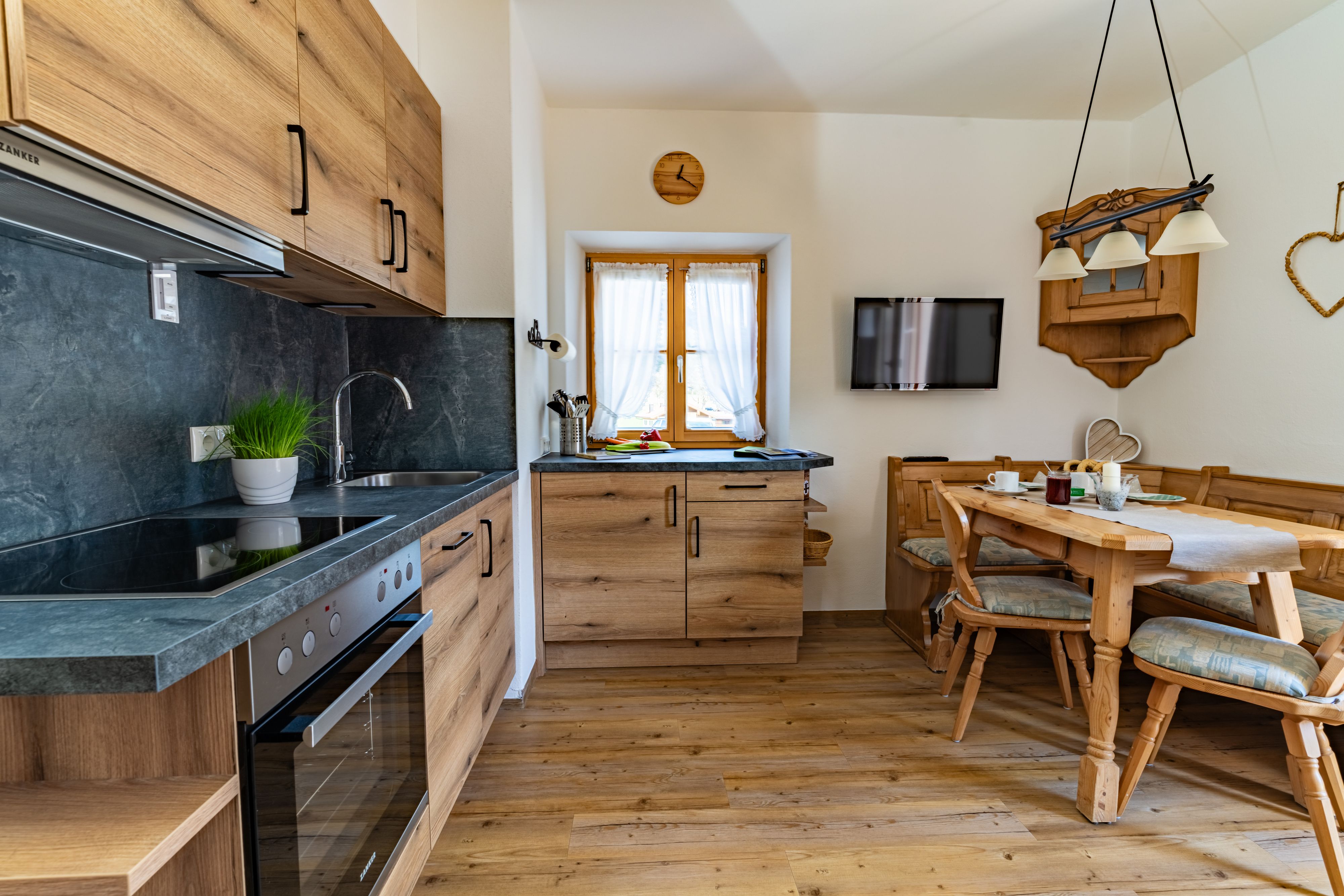 Mit Morgensonne und Zirbenholzgeruch – so erwachen Sie in unserer harmonisch eingerichteten Ferienwohnung für Paare oder Familien mit 1-2 Kindern. Die Ferienwohnung befindet sich im Erdgeschoss und über den Ostbalkon gelangt man direkt in unseren großen Garten zu den Hoftieren und zum Spielplatz für die Kinder.