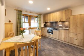 Neu gestaltete Ferienwohnung für 1 - 3 Personen. Separate Küche mit Südbalkon und hochwertiger, moderner Küchenzeile mit Geschirrspüler, Induktionsherd mit Backofen, Kühlschrank mit Gefrierfach und weiteren Kleingeräten.