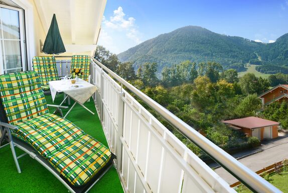Die großzügige, helle Ferienwohnung Unternberg mit separatem Schlafzimmer befindet sich in der 2.Etage und verfügt über einen komplett ausgestatteten Küchenbereich (Mikrowelle, 4-Platten Ceranfeld, Dunstabzug ...) mit Sitzecke. Die Wohnung ist für Allergiker geeignet, da sie nur mit Fliesen- und Vinylböden ausgestattet ist. Haustiere sind deshalb bei uns nicht möglich. Der große, überdachte Westbalkon hat einen herrlichen Bergblick und ist von anderen Gästen nicht einsehbar. Ein Zimmersafe, kostenloses WLAN und ein Laptop gehören ebenfalls zur Ausstattung. Das moderne Bad mit Fenster, Glasdusche und Spiegelschrank bietet genügend Abstellfläche.