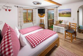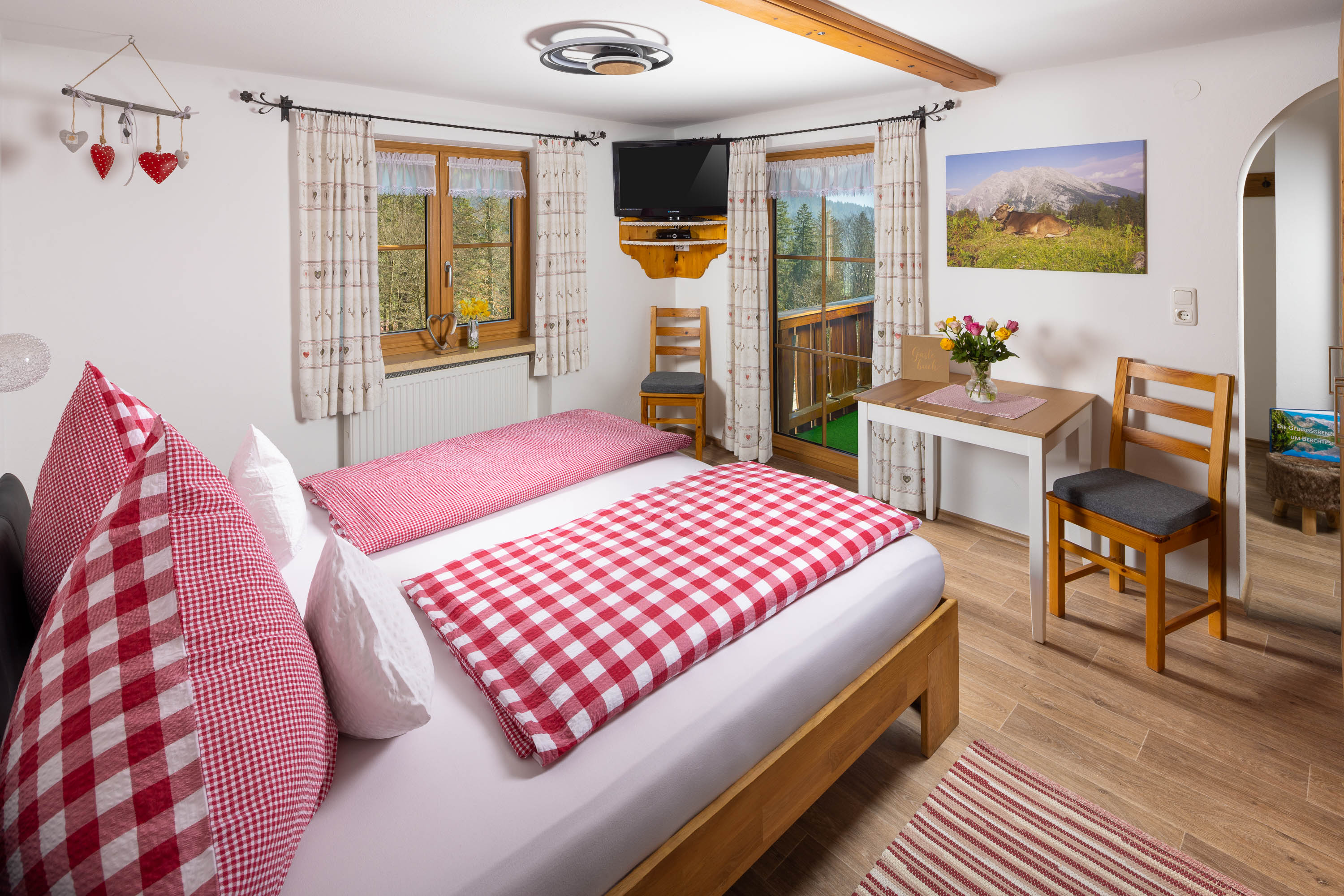Herzlich Willkommen im Haus Scheuerbichl! Unser Bauernhof liegt inmitten der Berchtesgadener Berge in einer freien, sehr ruhigen großen Wiesenfläche. Genießen Sie Ihren Urlaub in behaglicher, heimeliger Atmosphäre. Urlaub auf den Bauernhof ist ein Höchstgenuss nicht nur für Kinder, sondern auch für Erwachsene. Reine klare Bergluft, saftig grüne Wiesen, Berggipfel die vollkommene Ruhe ausstrahlen. Verbringen Sie Ihre kostbarsten Tage in absoluter Alleinlage am Ende einer kleinen Straße, ohne Durchgangsverkehr. In unserer Bauernstube servieren wir Ihnen ein köstliches Frühstück (ausschließlich für das Doppelzimmer)mit Produkten aus der heimischen Landwirtschaft und allem, was das Herz begehrt. Frisch gebrühten Kaffee, Orangensaft, knackige Semmeln, Wurst und Käse sowie hausgemachter Marmelade und Honig aus eigener Imkerei. Für die Ferienwohnung wird kein Frühstück serviert.