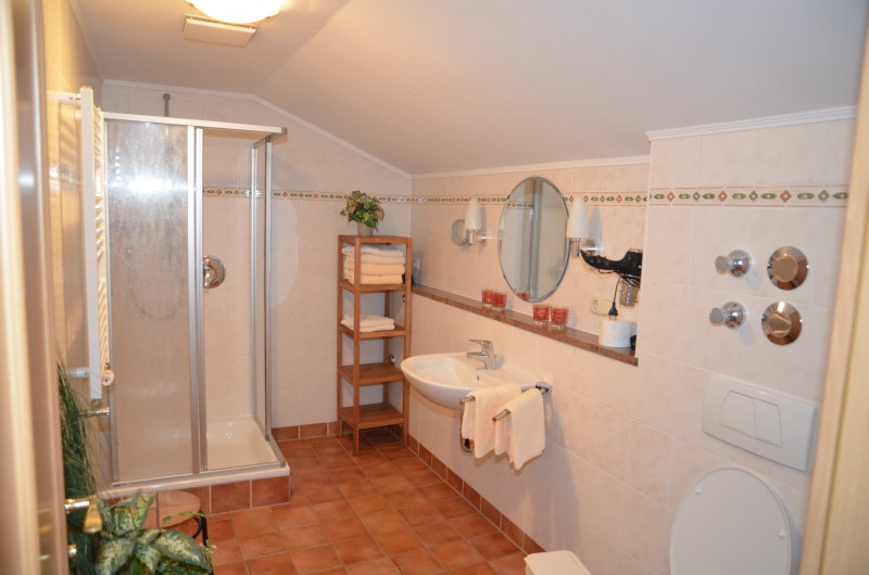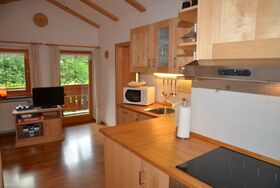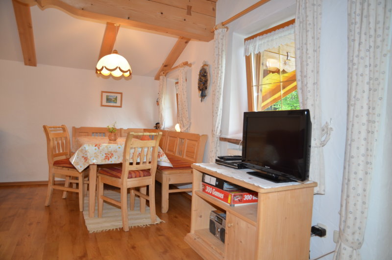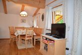 2 separate Schlafzimmer (davon ein kleineres mit Dachfenster und Etagenbetten für 2 Kinder oder 1 Erwachsenen), Wohnraum mit gemütlicher Wohncouch, Sat-TV, separater Essecke für 4 Personen und gut ausgestatteter Küchenzeile. Geräumiges Bad mit Fußbodenheizung, Dusche, WC und Handtuchtrockner. Großer, geschützter Balkon mit freiem Blick auf den Watzmann und die umliegenden Berge, ausgestattet mit gepolsteter Bank und Tischgruppe.