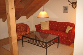 Die 65 qm große Ferienwohnung im 2. Obergeschoss verfügt über 2 separate Schlafzimmer (mit Doppelbett bzw. 2 Einzelbetten), ein Bad mit Badewanne/WC und den gemütlichen Wohnraum mit Essecke und Couch. In der Kochzeile finden Sie einen Elektroherd und Spülmaschine. Dazu natürlich TV und WLAN. Der Balkon mit Gartenmöbeln lädt zum Entspannen ein.