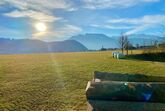 Die Ferienwohnung im Erdgeschoss hat ein Schlafzimmer (mit Doppelbett), ein Bad mit Dusche und WC und den Wohnraum mit Essecke, Couch und Kochzeile mit Elektroherd und Spülmaschine. Die Wohnung hat einen Flatscreen-TV und WLAN. Vom Wohnraum kommen Sie auf die Terrasse mit Gartenmöbeln und Blick auf die Berge.
