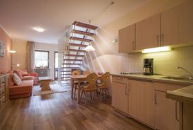 Die neu renovierte Maisonettewohnung verfügt über ein großes Wohnzimmer mit Flachbildfernseher und eine Ausziehcouch sowie eine Küchenzeile mit anschließendem Essbereich. Das Badezimmer hat eine Badewanne, das WC ist separat. Es gibt einen Balkon mit herrlichem Blick über Oberaudorf und auf das Kaisergebirge.