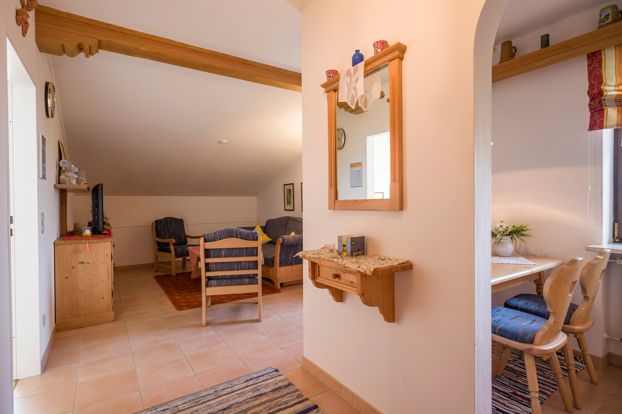 Neu renovierte, gemütlich eingerichtete Ferienwohnung mit wunderschönen Bergblick. Die Wohnung bietet ein separates Schlafzimmer, eine Küchenzeile und der Wohnbereich ist mit einer Schlafcouch für 2 Personen ausgestattet. Das Badezimmer verfügt über eine Badewanne. Eine eigene Garage steht zur Verfügung.