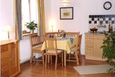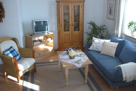 Die ca. 40 qm große Ferienwohnung bietet Platz für 1-3 Personen. Die Wohnküche ist ausgestattet mit einem Kühlschrank, einer Mikrowelle und einem Backofen. Ein Balkon lädt im Sommer zum verweilen ein. Bettwäsche und Handtücher sind bereits vorhanden. W-LAN ist in der Ferienwohnung vorhanden. Im Schlafzimmer befindet sich ein Doppelbett für zwei Personen und im Wohnzimmer ein Schlafsofa für eine dritte Person.