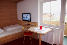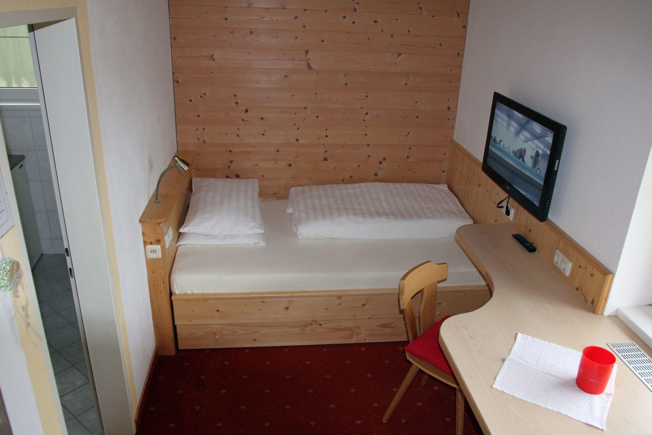 • Helles Einbettzimmer mit Dusche/WC, Kühlschrank, Haarföhn, Balkon, Kabel-TV