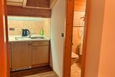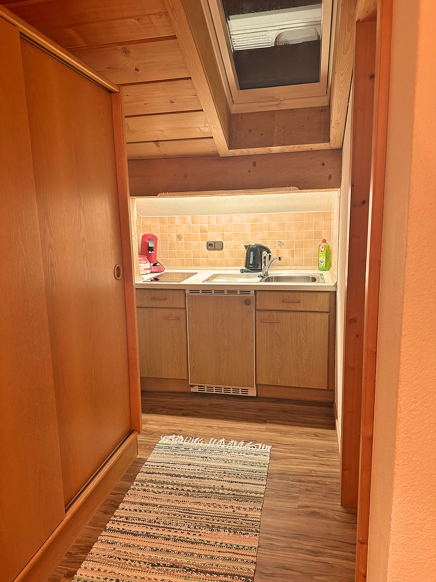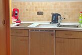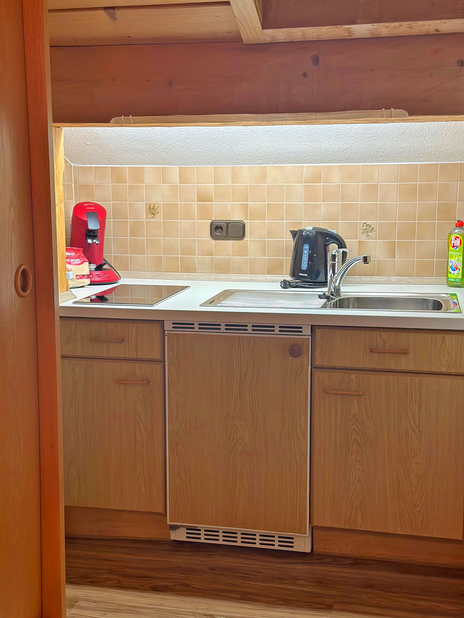 Küchenzeile ausgestattet mit 2 Platteninduktionsherd, Wasserkocher, Kühlschrank, Kaffepadsmaschine ect.