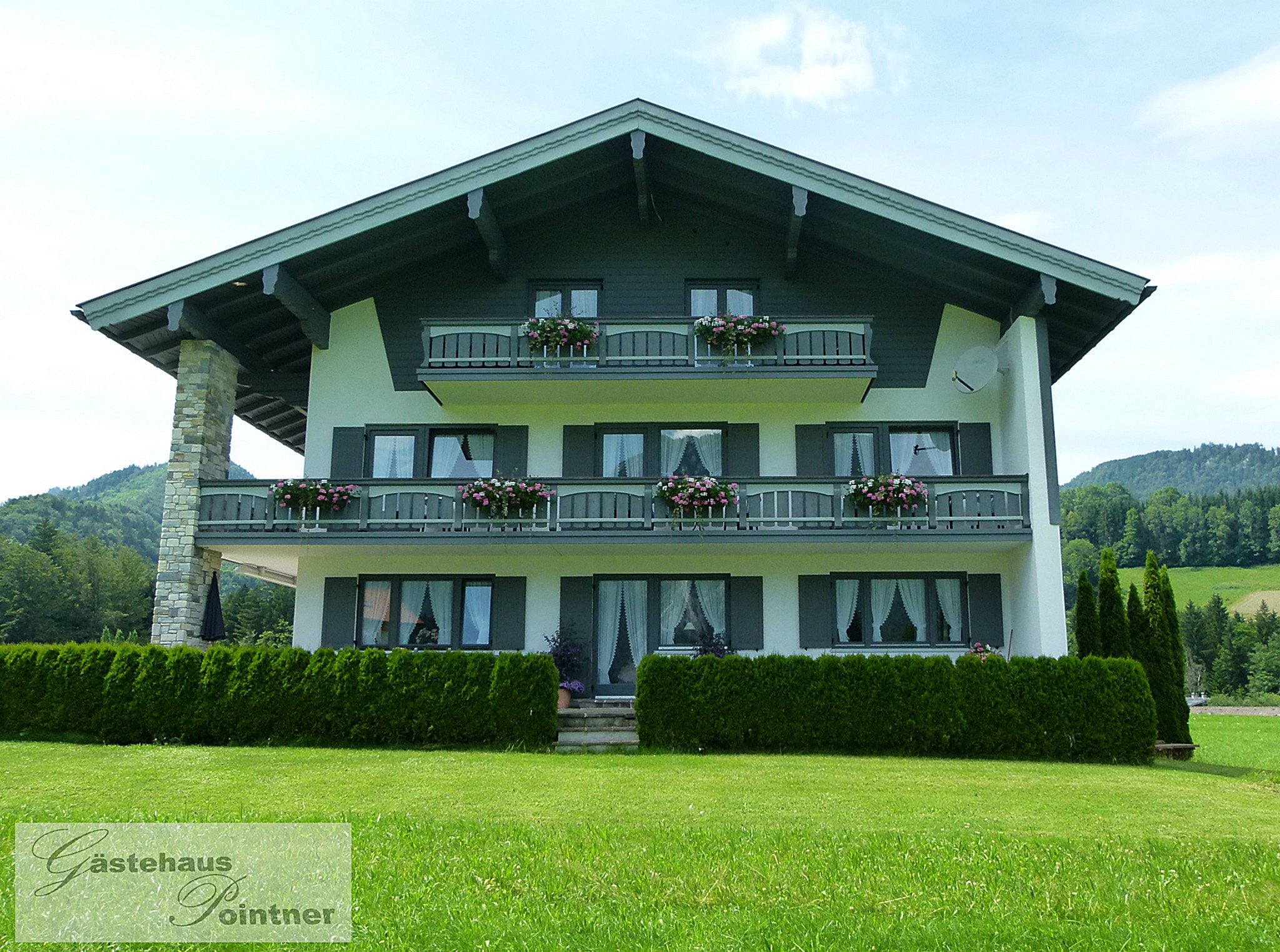Herzlich Willkommen im Gästehaus Pointner! Unser familienfreundliches Privathaus, mit freiem Blick auf Berge und Wiesen, liegt ruhig, etwas außerhalb und abseits vom Verkehr. Beginnen sie den Tag ganz entspannt nach Ihren Wünschen, ohne Stress die Frühstückszeiten einhalten zu müssen. Da bei uns im Haus kein Frühstück angeboten wird, können Sie selber entscheiden wo und wann Sie Frühstücken. Vielleicht in den netten Bäckereien oder Kaffees bei uns im Ort. Oder Sie fahren gleich los und genießen dann an dem Ausflugsort Ihrer Wahl eine Mahlzeit. Natürlich steht Ihnen bei uns im Haus ein Aufenthaltsraum mit Gästeküche zur Verfügung. Handtücher, WC Papier und Utensilien zur Selbstreinigung für Zwischendurch steht Ihnen ebenfalls zur Verfügung. Bei uns im Haus sind gerne auch Gruppen willkommen. Sie können sich gerne auch dann bei uns im Haus ein Frühstück selber zubereiten. Ein Gästekühlschrank steht für Sie bereit in dem für jedes Zimmer ein Fach reserviert ist. Einen gemütlichen Kaffee oder eine Brotzeit können Sie auch gerne entspannt bei uns im Haus herrichten. Ein Kaffeeautomat steht kostenlos zur Verfügung. Den Ortskern erreichen Sie in 15 Gehminuten. Wanderwege und Skiwanderloipen führen direkt am Haus vorbei. Unsere gemütliche Gemeinschaftsterrasse auf der Süd und Ostseite des Hauses lädt zum Entspannen, Plaudern und Frühstücken ein. Wanderwege und Skiwanderloipe führen direkt am Haus vorbei. Die nächste Gaststätte erreichen Sie in 5 Gehminuten, die nächste Bushaltestelle in 200m.