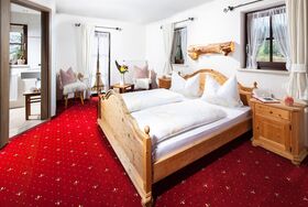 Geräumiges Doppelzimmer, ca. 20 m², mit direktem Blick auf den Watzmann, eingerichtet im ländlichen Stil. Balkon und Balkonmöbel. Flachbild-TV mit Radioempfang, W-Lan, Sitzgelegenheit mit Tisch und Stühlen. Dusche/WC, Fön, Toilettenartikel.Das Rauchen im Zimmer ist nicht gestattet, im Aussenbereich und auf dem Balkon jedoch erlaubt.Unsere bestens ausgestattete Gästeküche kann jederzeit genutzt werden.