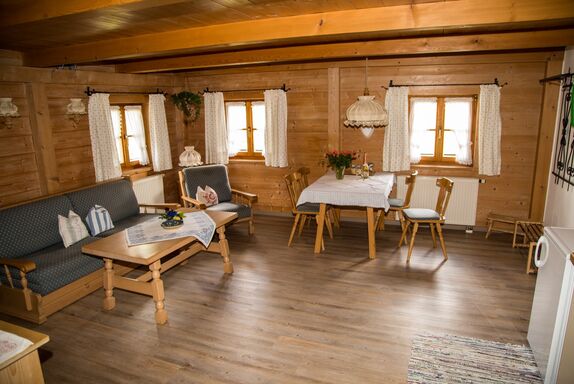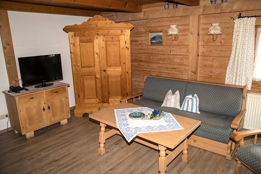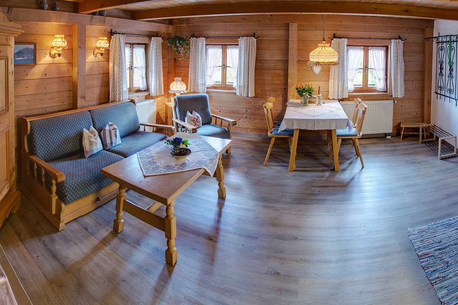 Die Ferienwohnung Zellerberg liegt im ersten Stock des ehemaligen Bauernhauses. Sie erreichen die Wohnung über den separaten Gästeeingang. Die Wohnung liegt nord-ost-seitig und verfügt über einen Balkon, welcher vom Gästehausgang aus erreichbar ist. Von hier aus können Sie direkt auf Ruhpolding und die umliegenden Berge, wie den Rauschberg, blicken. Vielleicht haben Sie Glück und Sie können die Gleitschirmflieger bei ihren Flugmanövern beobachten. Besonders empfehlenswert ist ein Frühstück bei Sonnenaufgang. Die Ferienwohnung besteht aus einem Schlafraum, einem Wohnzimmer mit Kochnische und einem Badezimmer. Für zusätzliche Gäste steht eine Doppel-Ausziehcouch zur Verfügung.