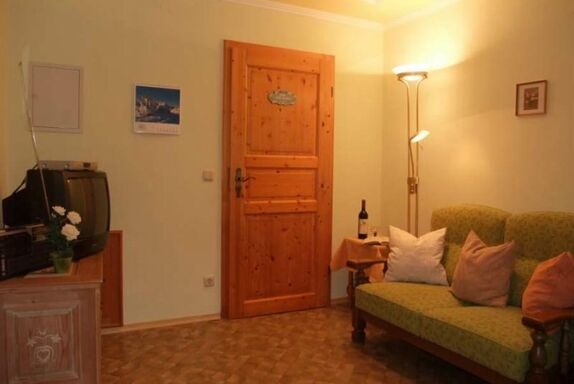 In unseren liebevoll eingerichteteten Ferienwohnungen im 1. Obergeschoß können Sie einen gemütlichen Urlaub in familiärer Atmosphäre verbringen. Die ruhigen Ferienwohnungen verfügen jeweils über eine Wohnküche mit Küchenzeile (Elektroherd mit 4 Kochplatten und Backrohr, Toaster, Kaffeemaschine, Wasserkocher), Sitzecke und Sofa, Schlafzimmer (Doppelbett, Einzelbett bzw. Liegecouch; Bettwäsche wird gestellt), Bad (Dusche, WC, Waschbecken, Föhn; Handtücher werden gestellt) und einen großzügigen, sonnigen Balkon (Stühle, Tisch, Liege und Wäscheständer).