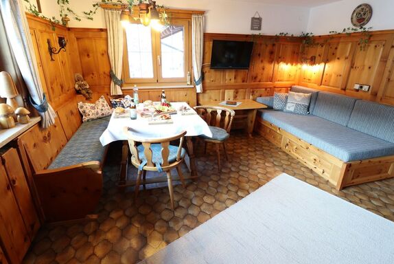 Mit ca. 50 qm Wohnfläche ist die Ferienwohnung Schlafende Hexe für Familien mit 2 bis 4 Personen geeignet. Auch die Wohnküche in dieser Wohnung ist komplett eingerichtet. Geschirr, Kaffeemaschine, Besteck, Spülmaschine, Mikrowelle, usw. Alles was Sie brauchen ist vorhanden.Das Appartement besteht aus Schlafzimmer (Doppelbett + Einzelbett), Dusche/WC, gemütlichem Wohnraum mit zusätzlicher Schlafgelegenheit, Sitzecke, Küchenzeile und ist mit Fernsehen und Radio ausgestattet.Am Abend lädt die gemütliche Stube im bäuerlichen Stil eingerichtet zu gemeinsamen Spielen oder einfach nur gemütlichem Beisammensein ein. Von den großzügigen Balkonen (Ost und Südwest ) aus, haben Sie einen herrlichen Ausblick auf das Bergpanorama.