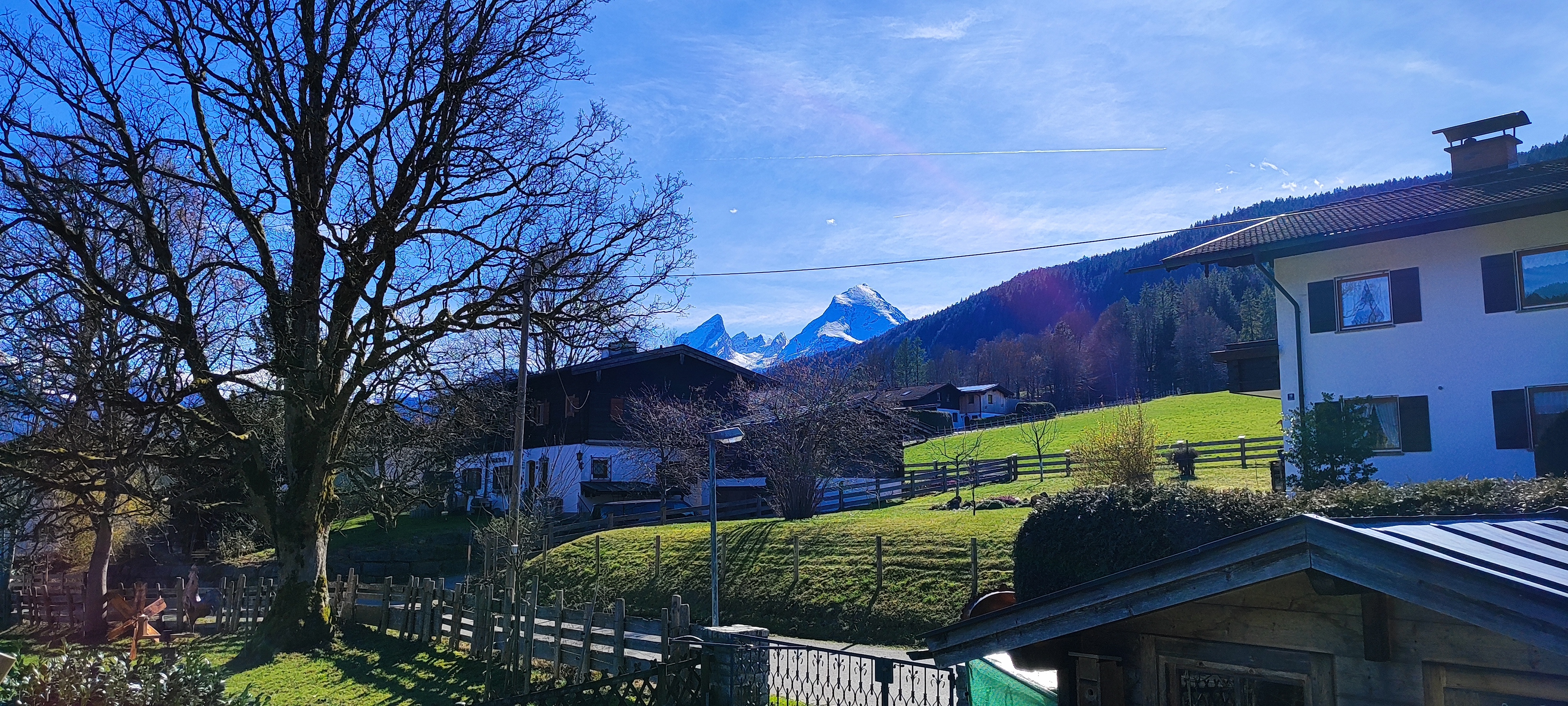 Genießen Sie den herrlichen Blick von Ihrer Ferienwohnung auf das Bergpanorama der Berchtesgadener Alpen.