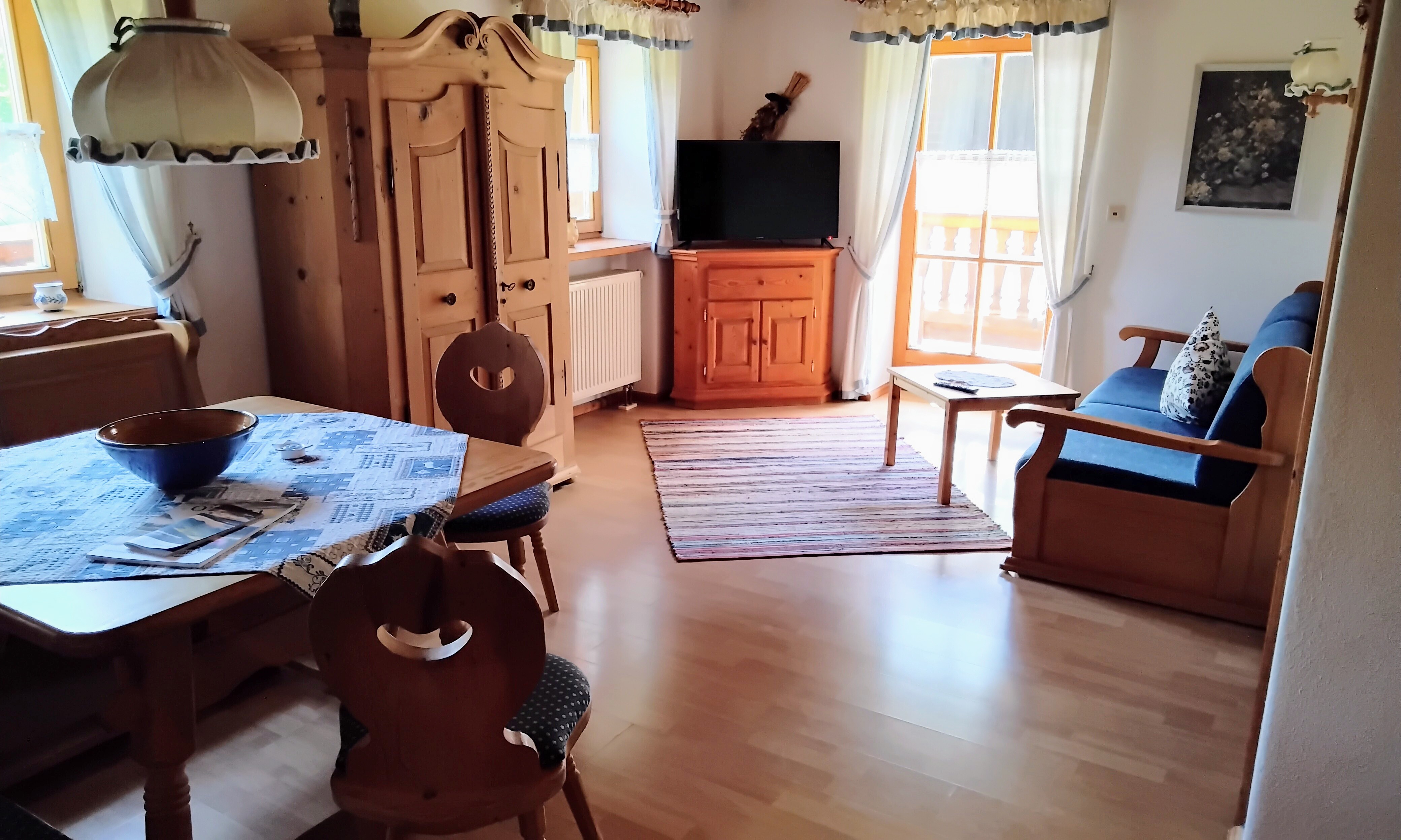 Die liebevoll hochwertig eingerichtete 4-Sterne Ferienwohnung liegt im 1. Stock unseres Bauernhauses mit großem Balkon. Sie bietet Platz für 2 - 4 Personen. Sie hat ein separates Schlafzimmer und ein Wohnzimmer (Doppelschlafcouch) mit Essecke. Die Wohnung ist komplett ausgestattet mit Einbauküche ( Spülmaschine),Bad mit Fußbodenheizung, ebenerdiger Dusche und WC, Sat-TV, WLAN, Telefon und Stereoanlage. Bettwäsche und Handtücher bekommen Sie von uns.