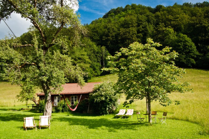 sonnige Terrassen, eine große Liegewiese, einen Grillplatz mit überdachter Sitzgelegenheit, einen gemütlicher Aufenthaltsraum, einen Hobbyraum mit Tischtennis und Kicker und einen Spielplatz für die Kinder.