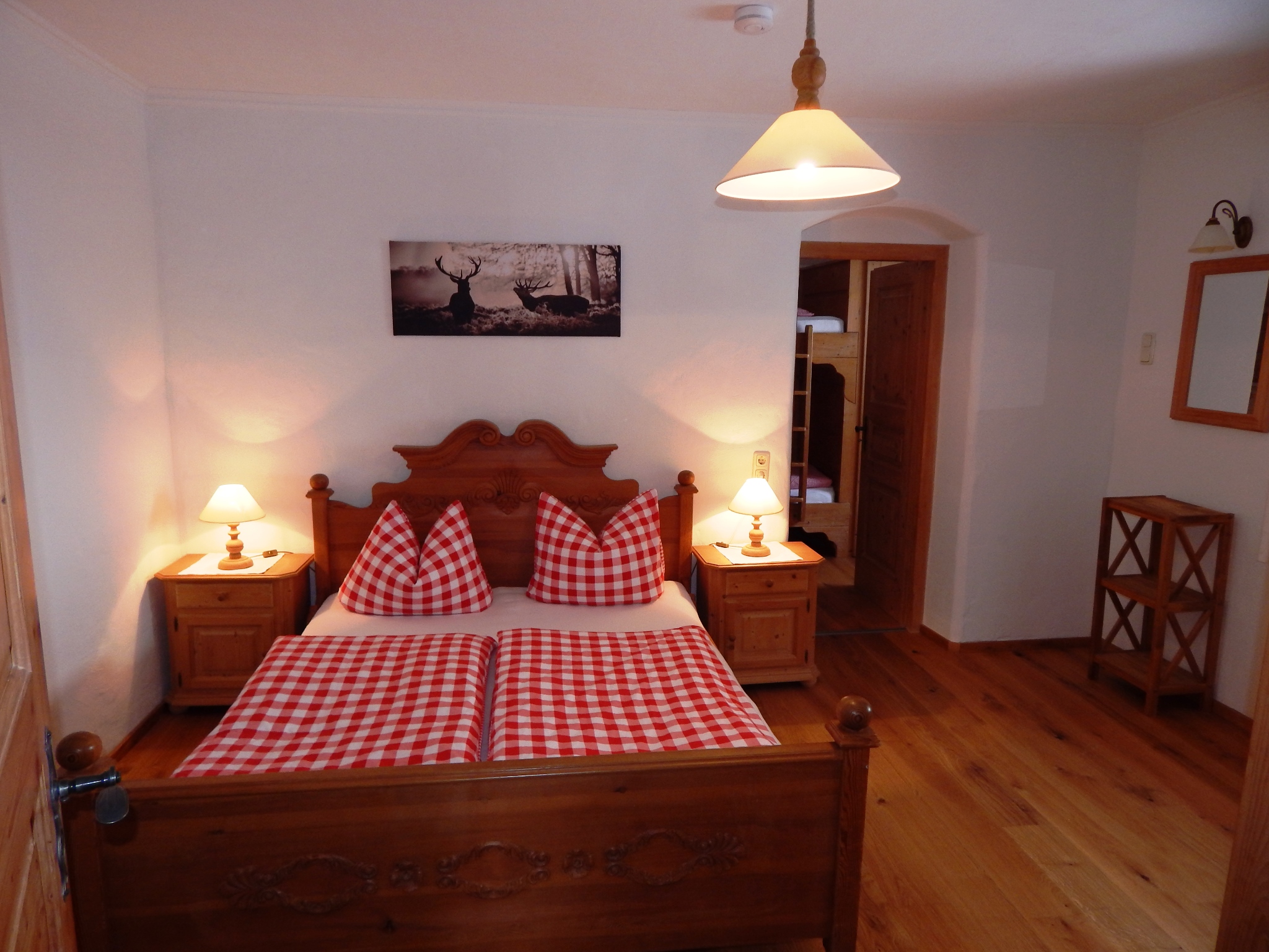 Wohnung mit Einbauküche, Essecke, Schlafsofa, ein Schlafzimmer mit Doppelbett, ein Schlafzimmer mit Etagenbett, Bad (Dusche, WC, Waschbecken), Balkon über Hausflur erreichbar.Flachbildfernseher und kostenloses Wlan.Auf Wunsch Brötchenservice.Das Plus: Neue Einbauküche mit SpülmaschineDie Lage: Im Haupthaus, 1. Etage und unverbauter Bergblick