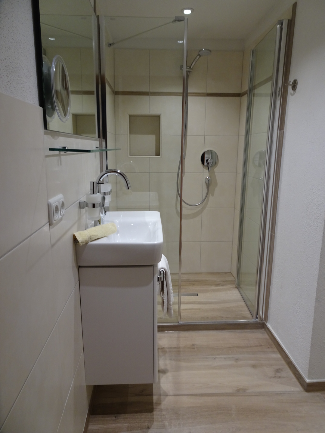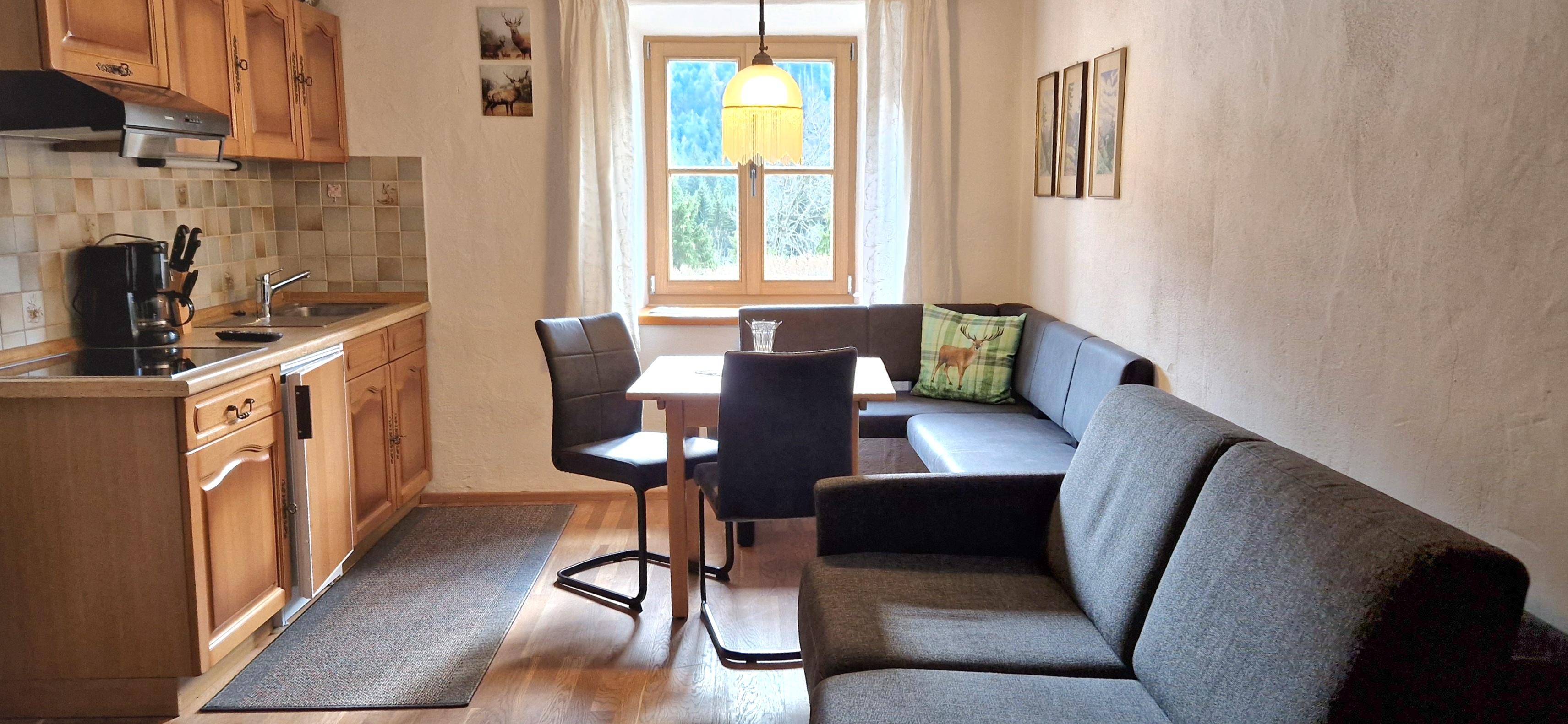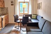 Wohnraum mit Einbauküche, Essecke, Schlafsofa, ein Schlafzimmer mit Doppelbett, Bad (Dusche, WC, Waschbecken).Flachbildfernseher und kostenloses Wlan.Auf Wunsch Brötchenservice.Das Plus: Ruhige LageDie Lage: Im Haupthaus, 1. Etage.