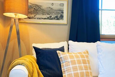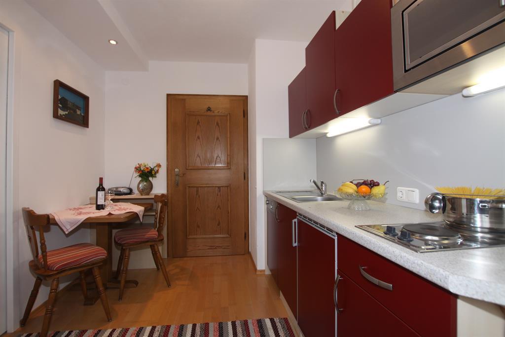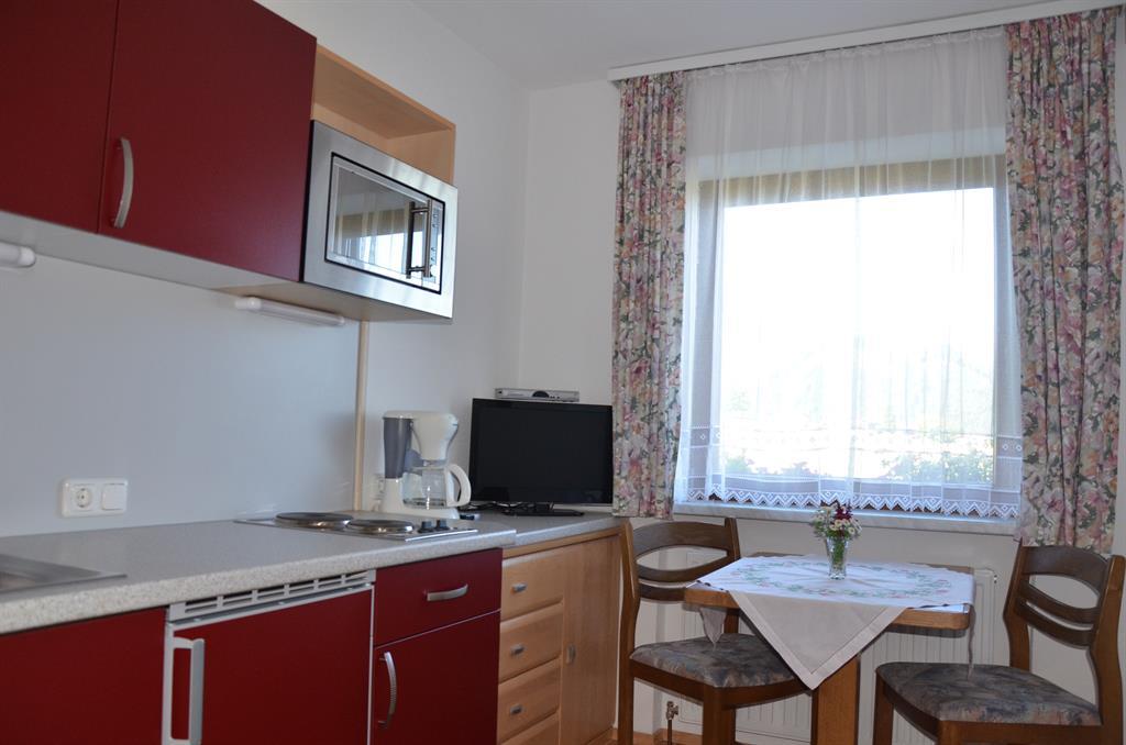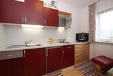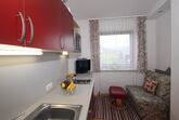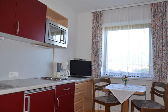 Kleine Ferienwohnung mit 1 Schlafzimmer, Dusche/WC, Wohnraum mit Küchenblock und Essecke, TV und großer Süd-Westbalkon