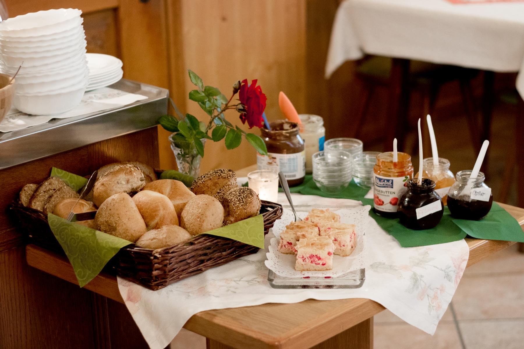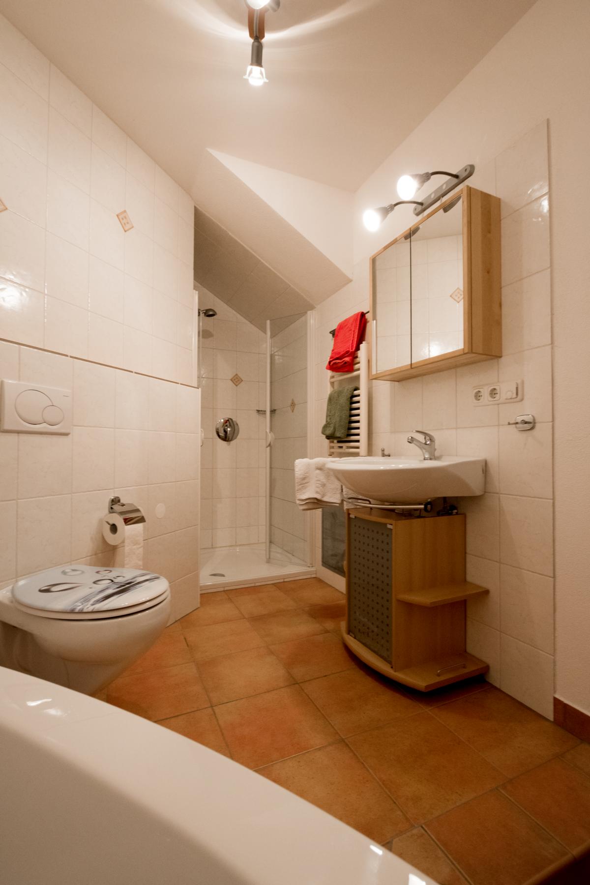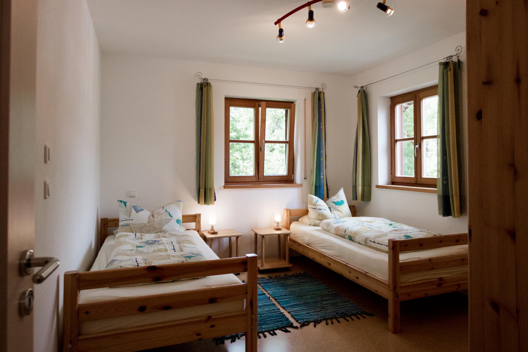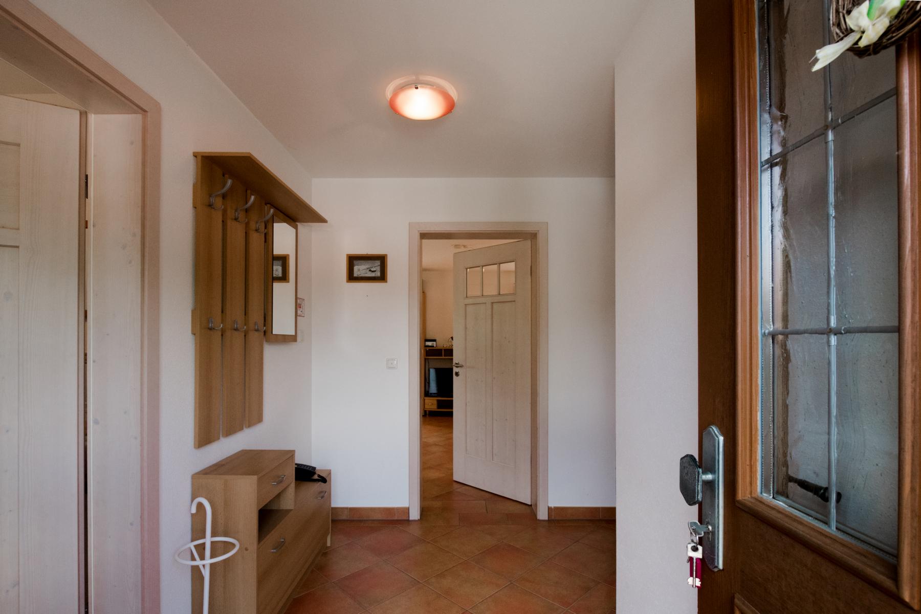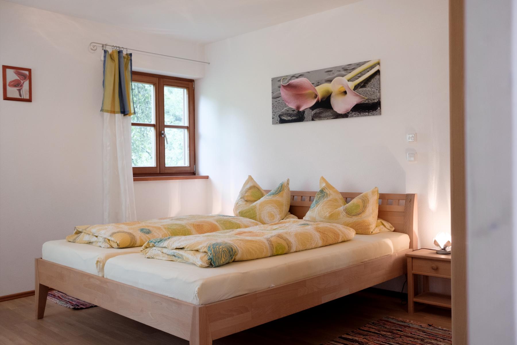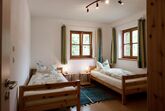 Die Ferienwohnung Hänsel im Erdgeschoß und Untergeschoß des Zuhauses bietet auf 106 m² viel Raum für die ganze Familie. Mit ihren drei Schlafzimmern finden auch große Familien mit bis zu 6 Personen bequem Platz. Im Erdgeschoß sind Küche und Wohnzimmer, Eltern- und Kinderzimmer sowie eine Diele mit WC untergebracht. An der Süd- und Westseite liegt die großflächige Terrasse mit Blick auf unverbaute Natur und unsere Berge. Diese Terrasse steht Ihnen zur alleinigen Nutzung mit Sitzgelegenheiten zur Verfügung. Im Untergeschoß befindet sich ein weiteres Schlafzimmer sowie das Badezimmer. Aus Rücksichtnahme auf unsere Gäste sind Haustiere im Zuhaus nicht erlaubt.