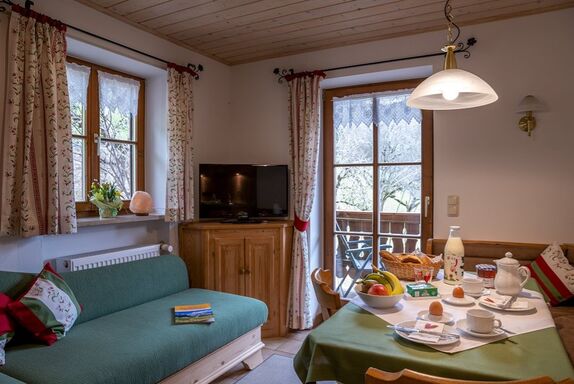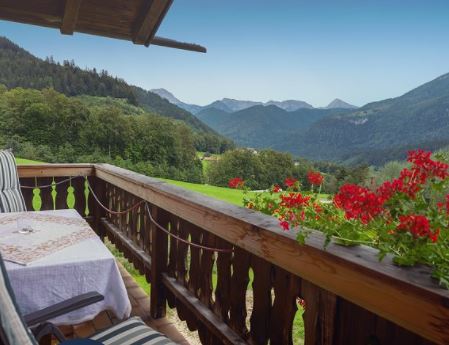 Morgens am Balkon die Sonne geniessen und den Blick Richtung Jenner, Schneibstein und Watzmann ruhen lassen. Geweckt werden Sie von den Vögeln, die in den Obstbäumen sitzen. Kein Aus- und Einpacken über beschwerliche Treppen.