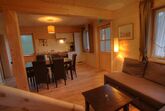 Das Mountain Inn Family Chalet bietet mit ca. 70 m² zwei großzügige Doppelschlafzimmer im Obergeschoss, Wohnzimmer und Küche mit voller Ausstattung, Essbereich, Bad mit Eckbadewanne, Bad mit Dusch, WC, LCD-TV in allen Zimmern, W-Lan gratis und Veranda mit kleinem Garten.