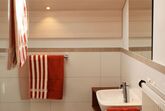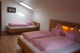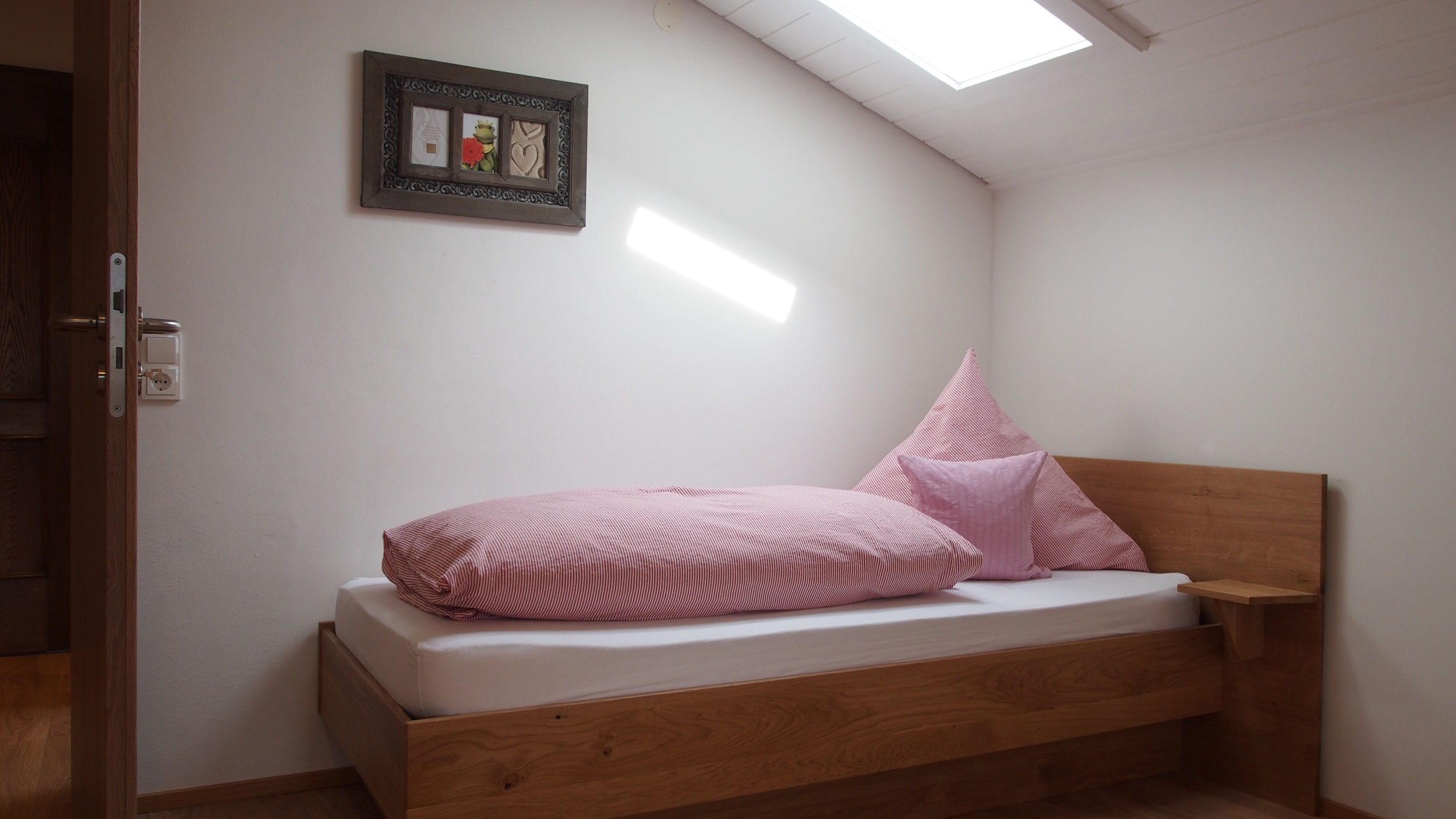 1 Schlafzimmer 1 Doppelbett (180 x 200 cm) mit Wendematratzen und 2 Einzelbetten (90 x 200), Bettwäsche vorhanden,