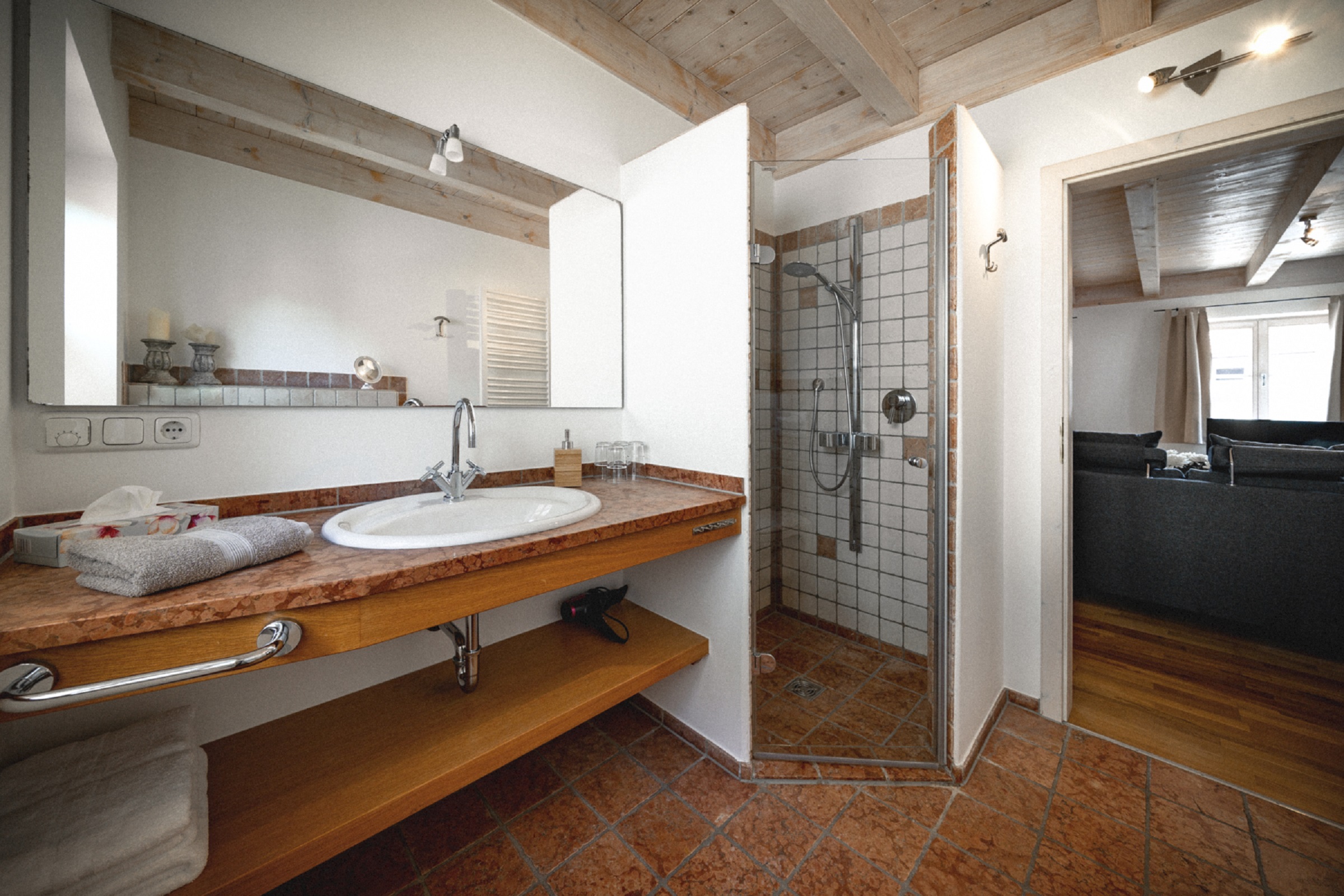 Die zentrale Lage und die exklusive Ausstattung machen unsere Ferienwohnungen zu einer Besonderheit. Mit alpenländisch-mediterranen Möbeln wurde das Wohlbefinden des Gastes in den Mittelpunkt gestellt.