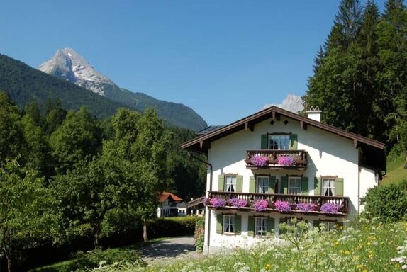 Zwischen Berchtesgaden und Ramsau, am Fuße des Watzmanns, erwartet Sie unser Haus mit zeitgemäßem Komfort und einer bayerisch gemütlichen Atmosphäre. Unser Landhaus, günstig gelegen für erlebnisreiche Wanderungen sowie genussvolle Bergtouren zu jeder Jahreszeit, die jedem Anspruch genügen. Ob Mountainbiker, Motorradfahrer, Kurzurlauber, Wanderer oder Bergsteiger, Sie finden bei uns großzügig und liebevoll eingerichtete Zimmer in angenehmen Ambiente. Die imposante Bergwelt rund um den Watzmann lädt zu vielen Aktivitäten ein. Erkunden Sie den natürlichen Reichtum dieser Gegend, auf malerischen Wanderwegen zu bewirtschafteten Almen oder mit einer Bootsfahrt über den Königssee. Erreichen Sie hohe Ziele beim Bergsteigen, z.B. auf dem Jenner oder dem Kehlsteinhaus. Besuchen Sie die Festspielstadt Salzburg oder den Kurort Bad Reichenhall, beides etwa nur 20 km entfernt. Die märchenhaft verschneite Landschaft des Berchtesgadener Landes lädt geradezu ein, Wintersport zu betreiben. Genießen Sie kilometerlange Langlaufloipen und Spazierwege rund um Bischofswiesen. Romantische Pferdekutschenfahrten, Schneeschuhwandern, Eissport am Hintersee, Rodeln oder einfach nur klare, gesunde Bergluft atmen. Für den Skiifahrer stehen ganz in der Nähe Skigebiete wie Götschen, Hochschwarzeck oder Rossfeld zur Verfügung.