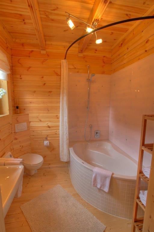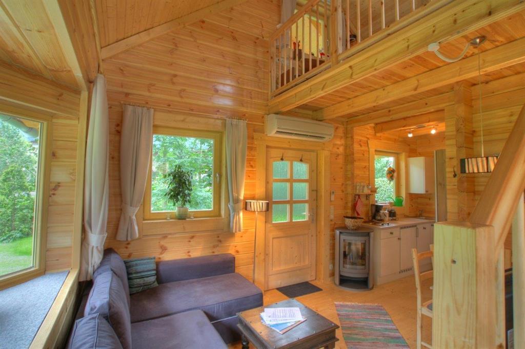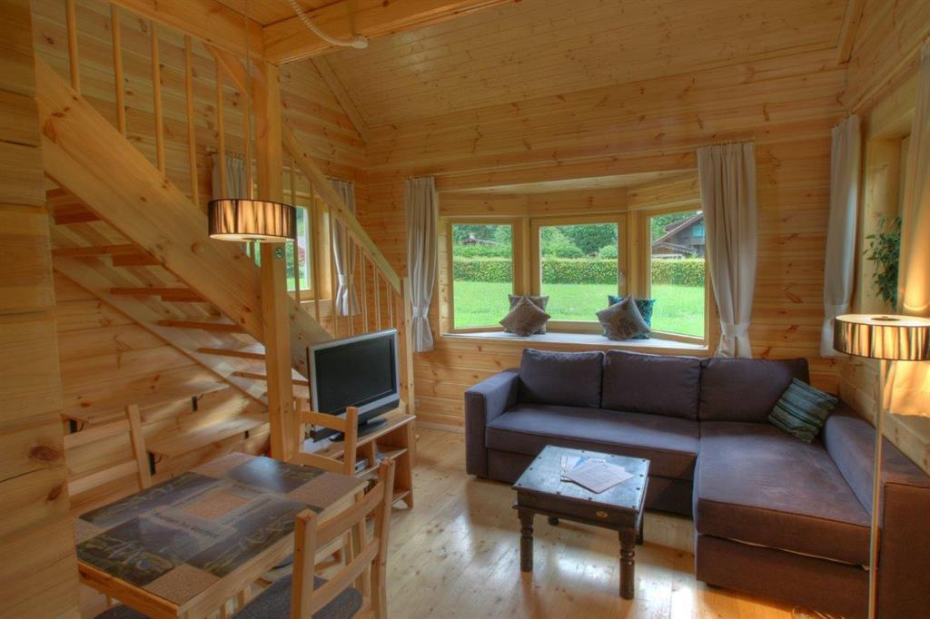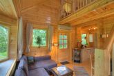 Jedes Chalet (ca. 40 m²) bietet einen Wohn-/Essbereich, eine Empore mit Schlafzimmer! Im Badezimmer finden Sie eine gemütliche Eckbadewanne, die zum entspannen einlädt. In der Küche ist alles vorhanden, was Sie zum „Selbstversorgen“ brauchen! ...und eine gemütliche Veranda mit Blick in die Berge!
