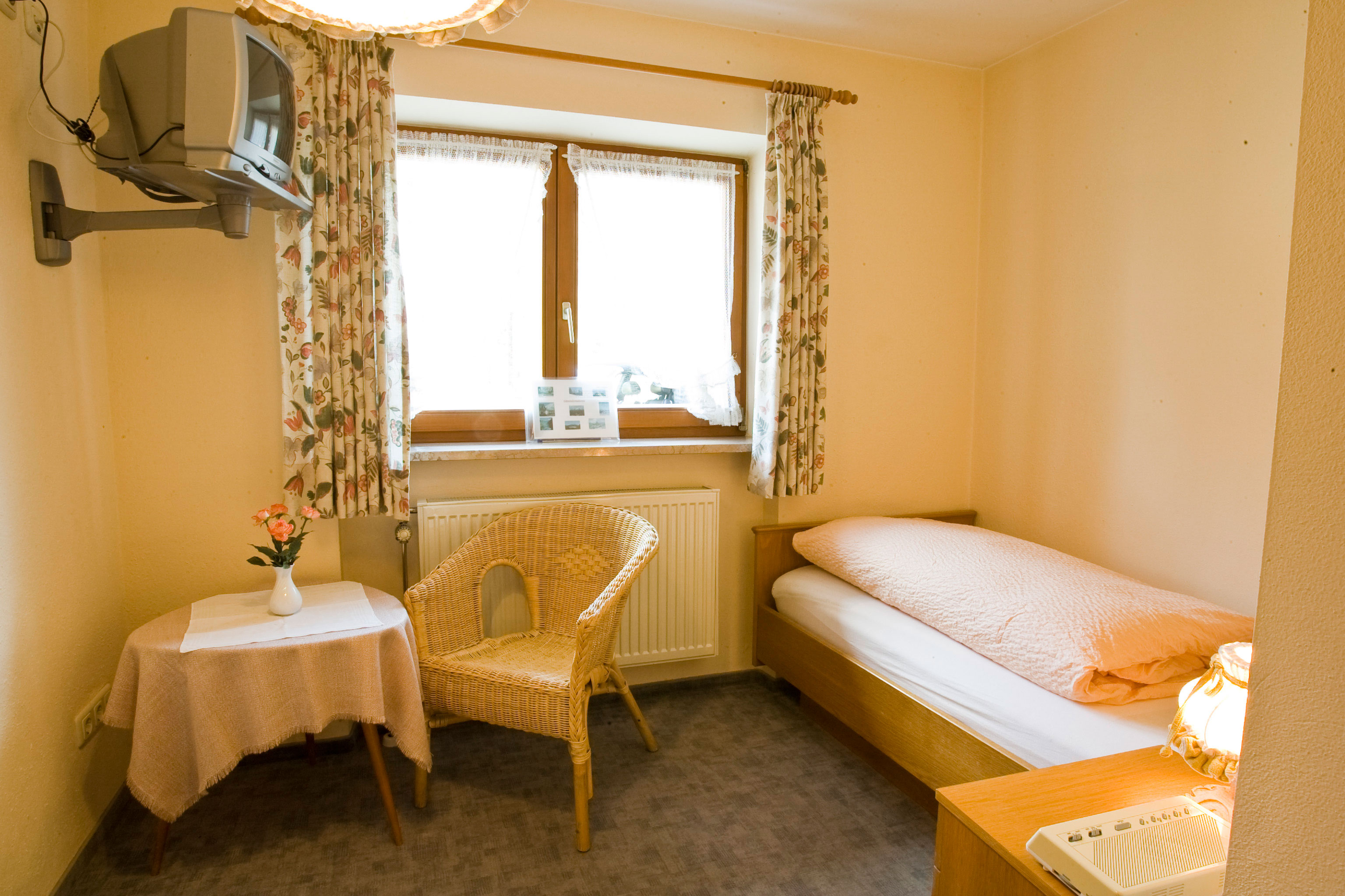 Die Einzelzimmer sind rauchfrei und haben Laminatboden. Die Zimmer haben Balkon mit seitlichem Bergblick. Von dort können Sie den Sonnenaufgang genießen. Beide Zimmer im Dachgeschoß!- Einzelbett 1,90 Länge- Kabel TV, Flachbild- Radiowecker- Bäder mit Dusche/WC
