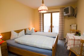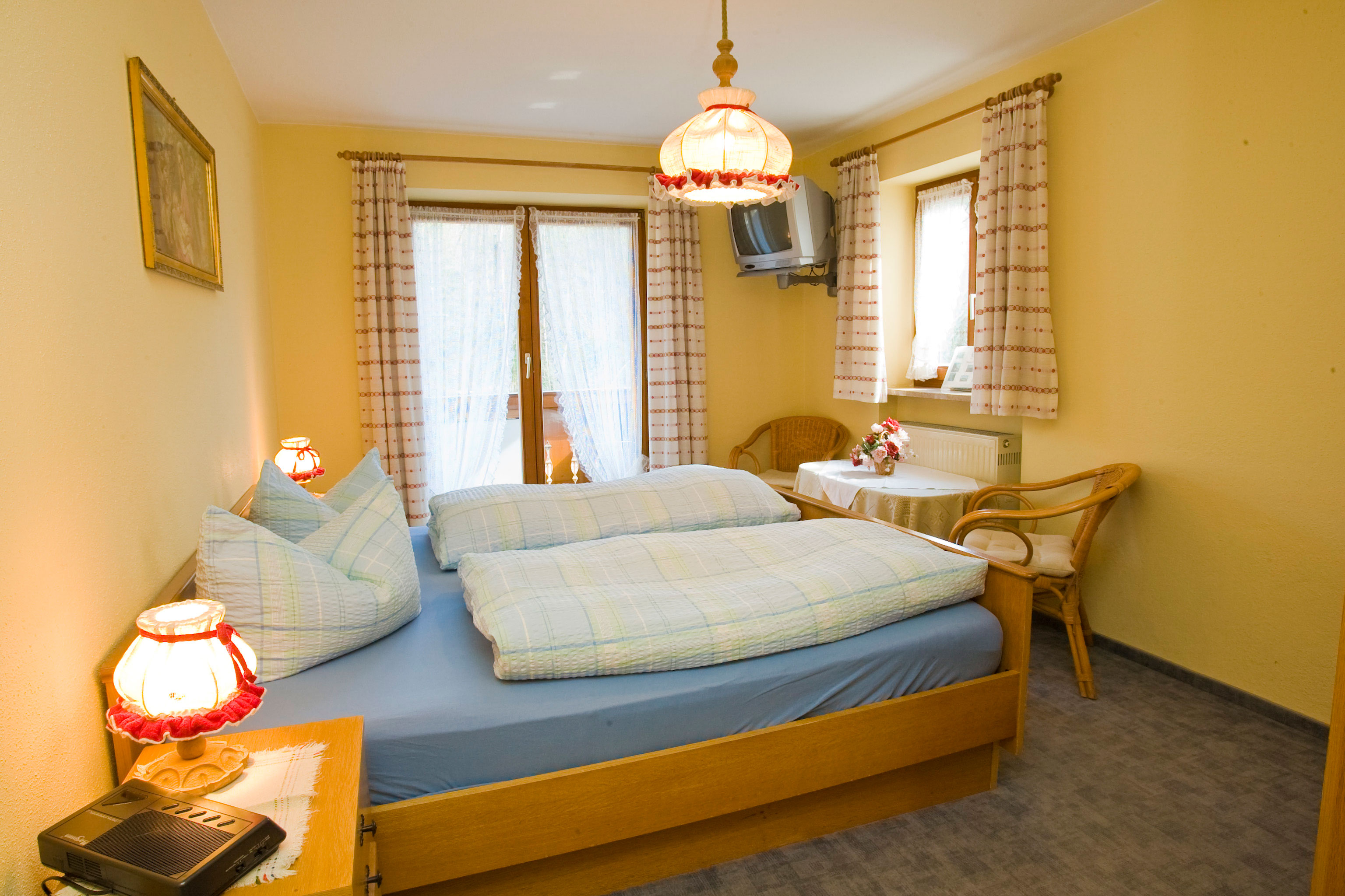 Die Doppelzimmer sind rauchfrei und haben Laminatboden. 4 von 5 Zimmer haben Balkon und Bergblick, Sonne bis in der Nachmittag. Das Gästehaus bietet 1 Zimmer Parterre mit ebenerdiger Dusche. - Neu renoviert - Teilweise mit Boxspringbetten (getrennte Betten möglich) - Gemütliche Sitzecke - Schreibtisch (Zimmer Parterre nicht) - Kabel TV, Flachbild - Radiowecker - Verdunkelungsvorhänge - Neu renovierte Bäder mit Dusche/WC