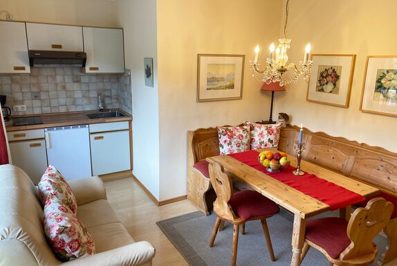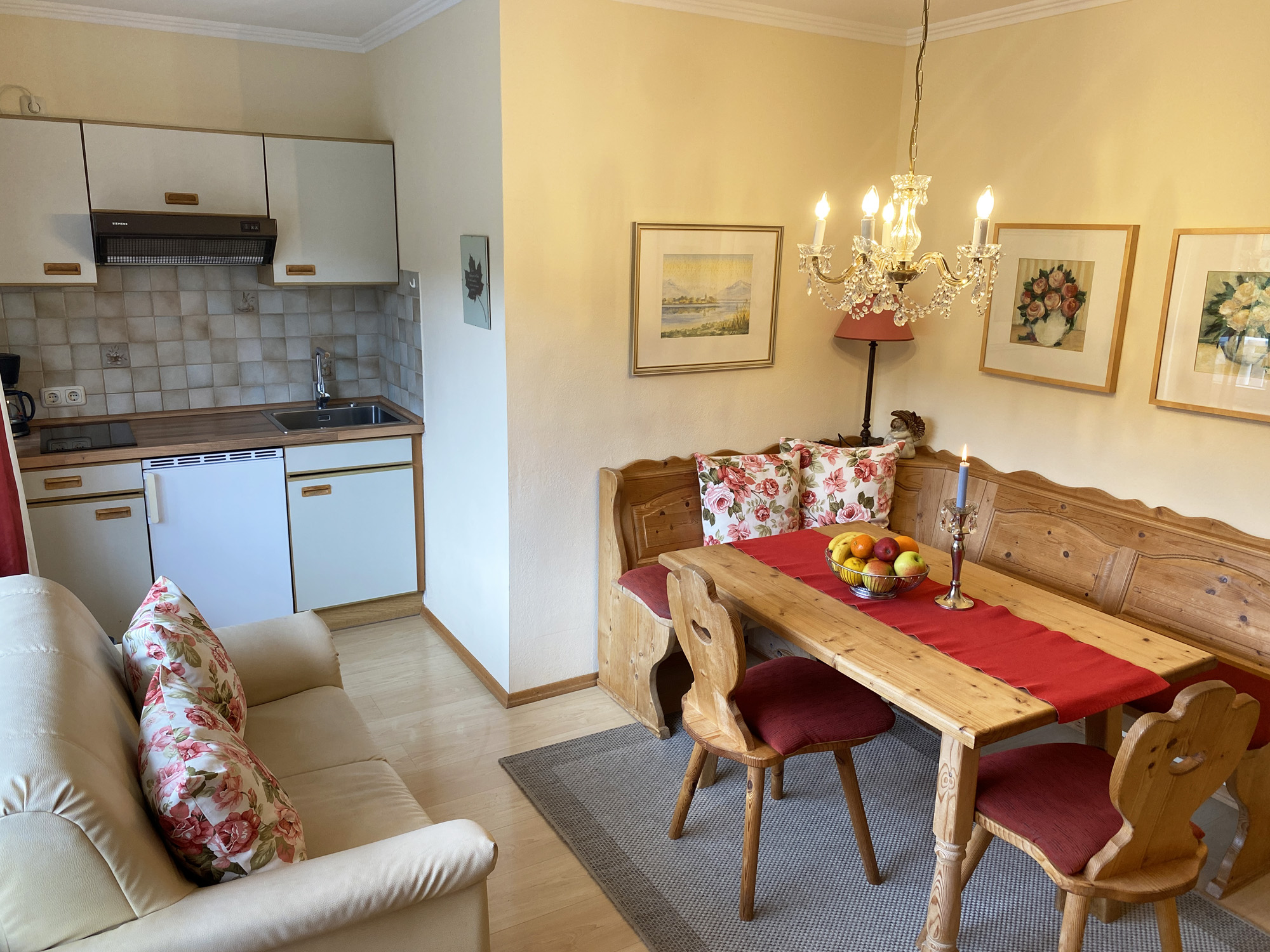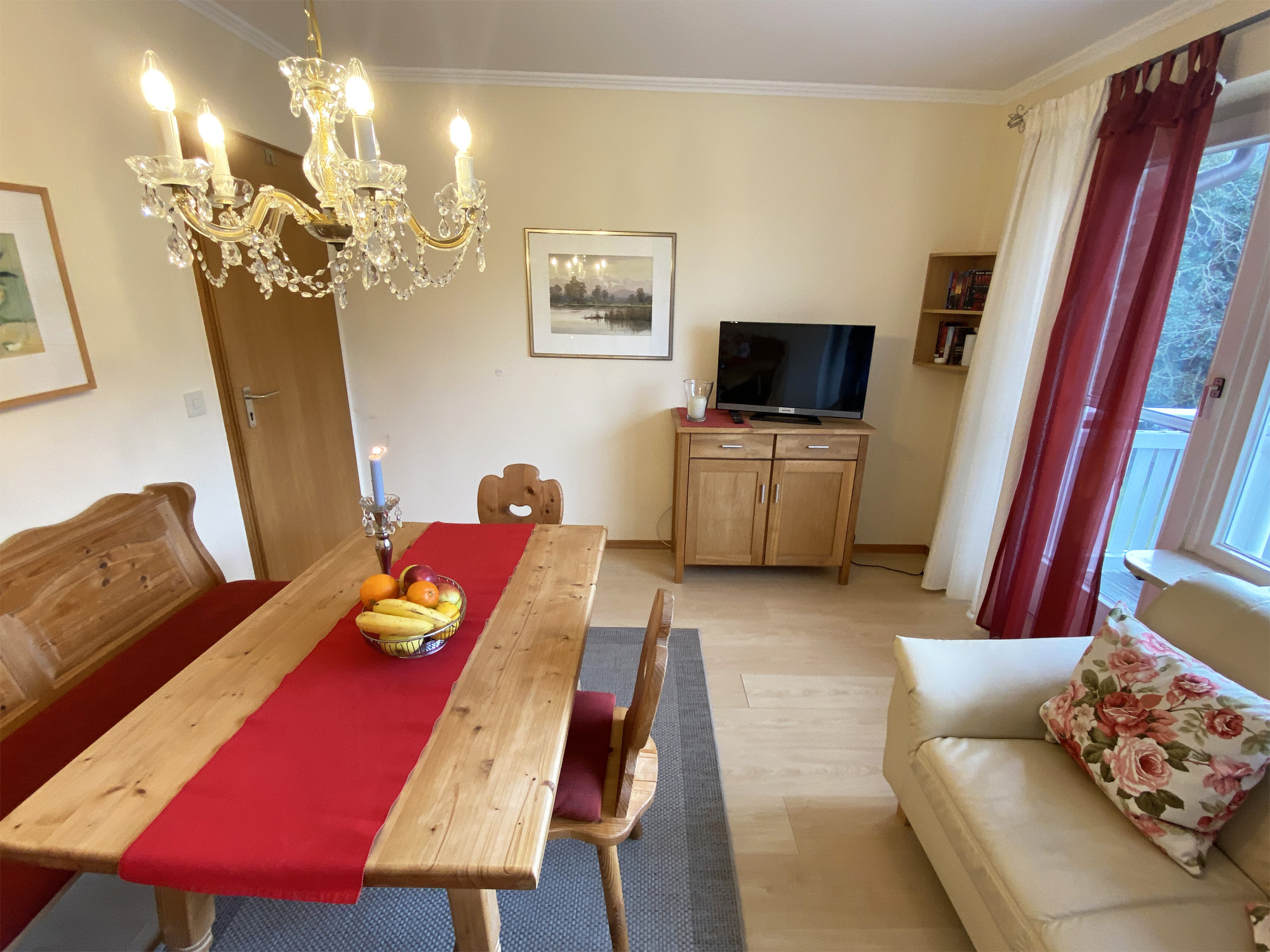 Sonnige, komfortable Wohnung, Dusche und WC, Telefon, Radio, SAT-TV-Anschluss und Südbalkon mit Balkonmöbel, Telefon, Kühlschrank mit Tiefkühlfach, Wecker. Inkl. Handtücher, Tisch- und Bettwäsche sowie Endreinigung. Parkplatz am Haus.