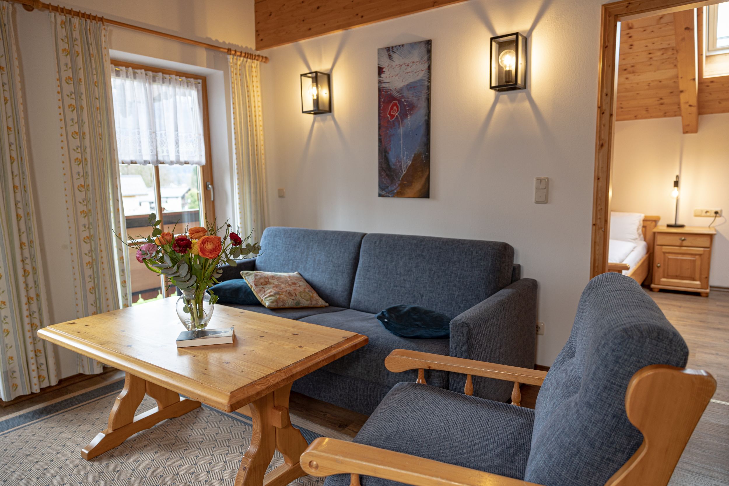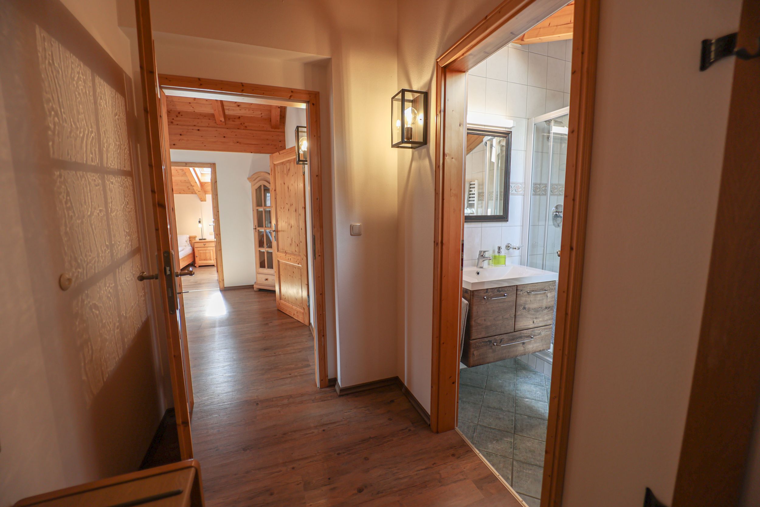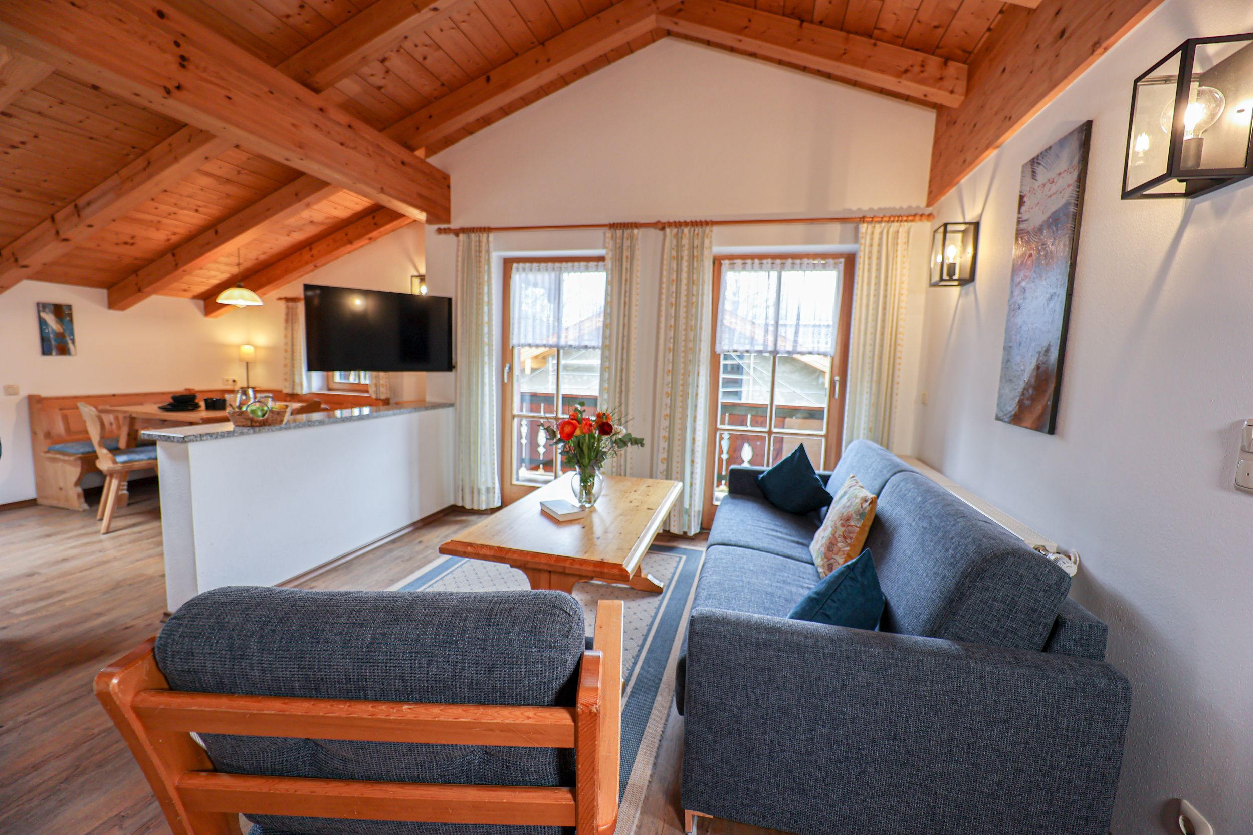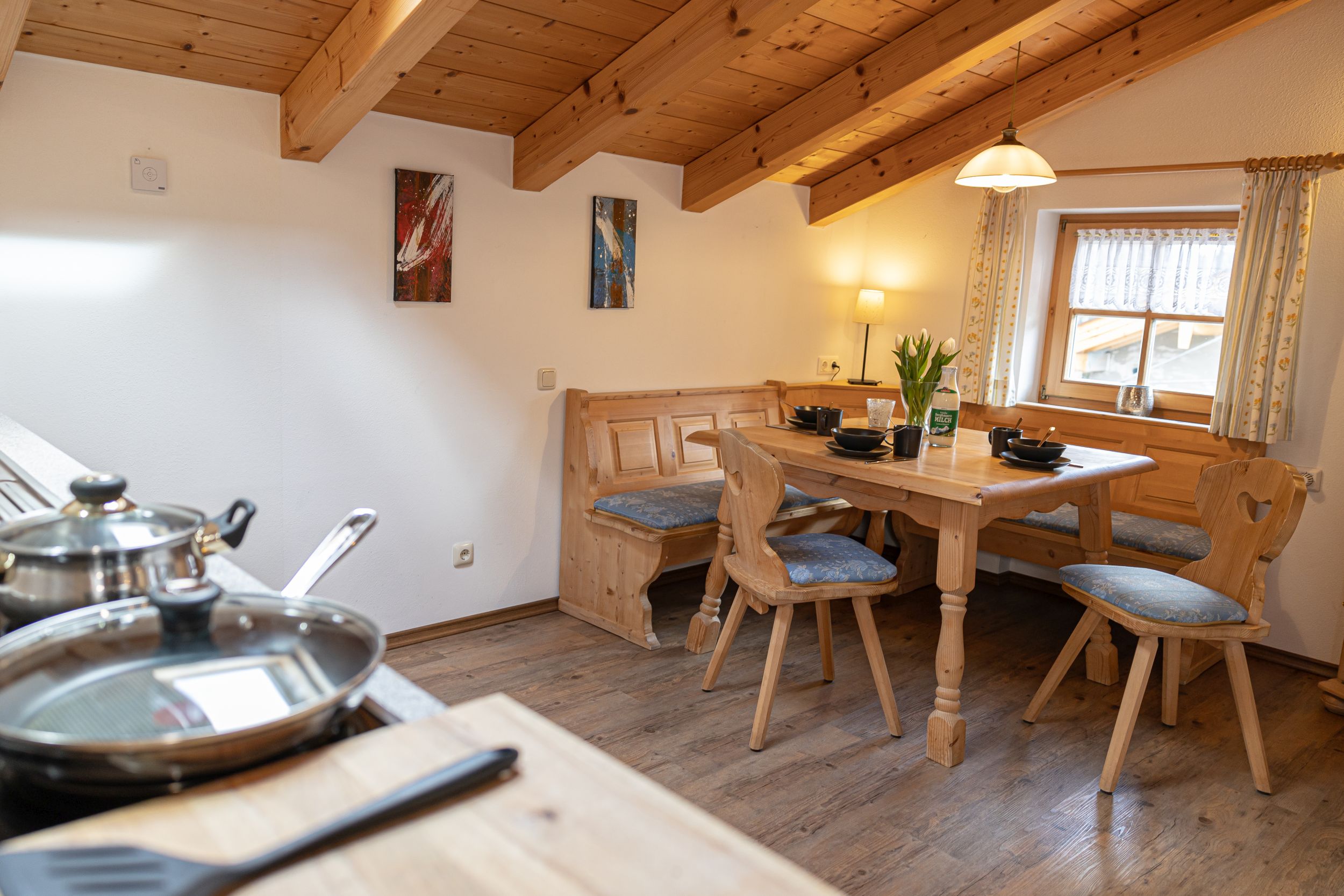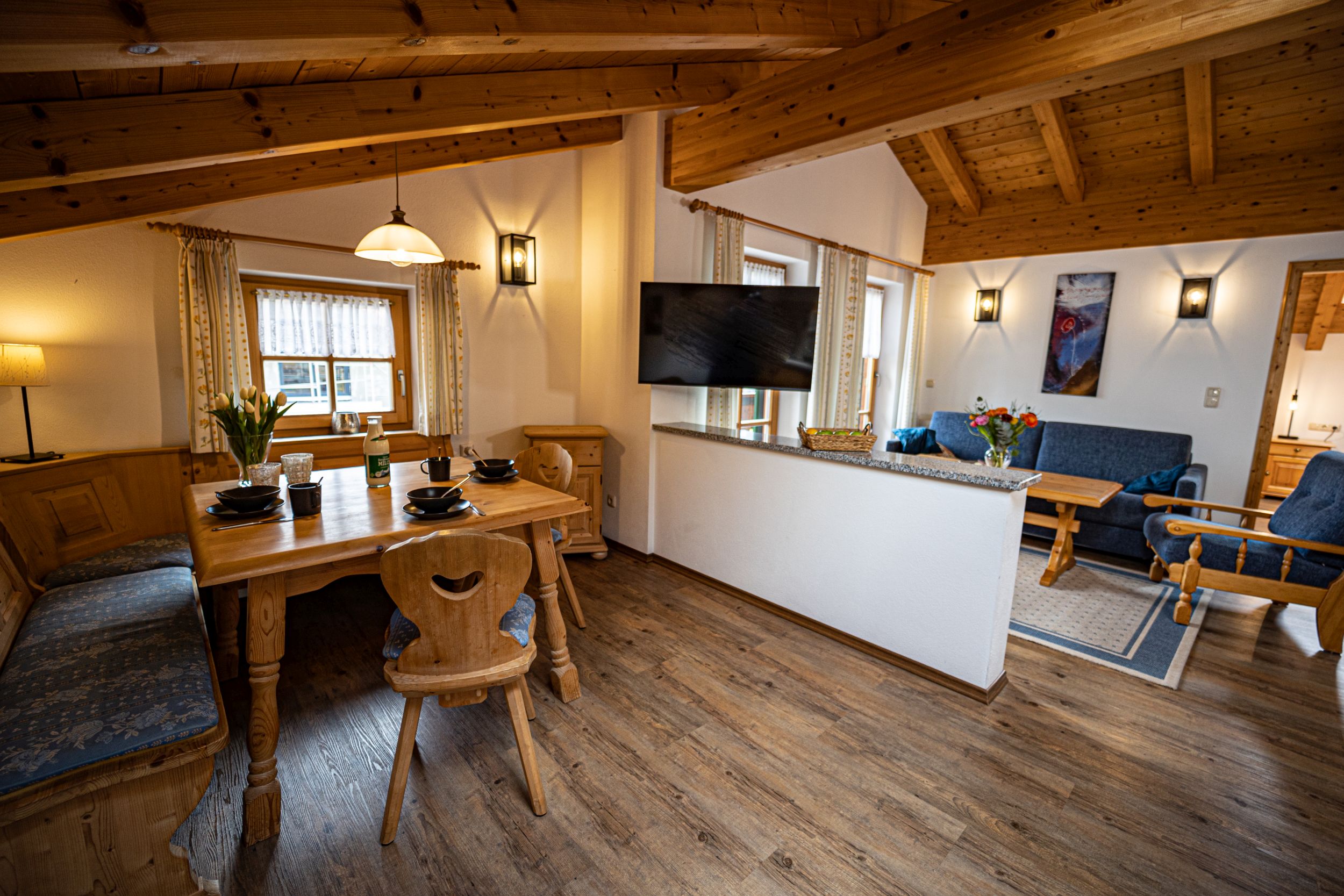 Die Wohnung ist vom Deutschen Tourismusverband (DTV) mit F**** ausgezeichnet worden!Die mit viel Naturholz ausgestattete Wohnung ist aufgeteilt in einen Vorraum; ein separates Schlafzimmer; ein Badezimmer mit Dusche und WC, Waschbecken; ein geräumiges Wohnzimmer mit Essbereich, eine ausziehbare Couch mit einem Schlafkomfort wie ein Bett und eine Kochnische.Die Ferienwohnung Nr. 2 liegt im Dachgeschoß und besitzt einen schönen Ost-Balkon mit Blick auf die Berchtesgadener Alpen.