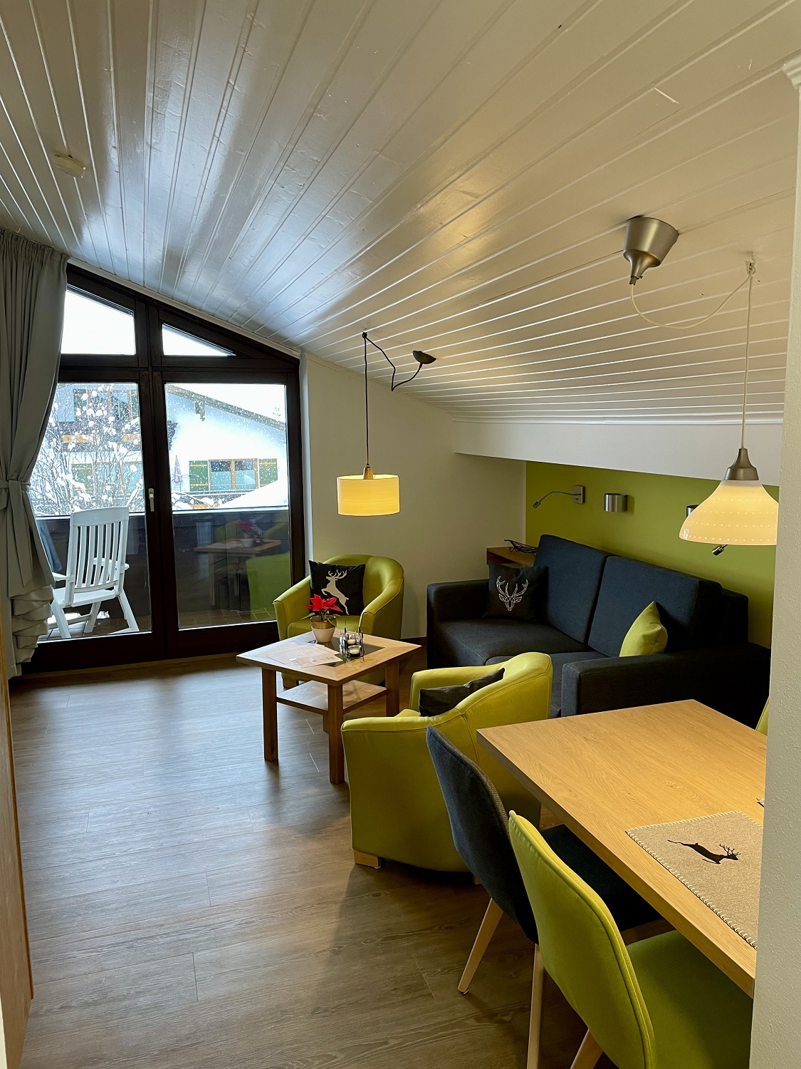 Die Ferienwohnung Nr. 5 Hochkalterblick besteht aus einem großzügigen Wohnraum mit kompletter Küche, Essplatz, Sitzgruppe mit Farb-TV, Schlafzimmer, Duschbad mit WC und Vorraum. Die Ferienwohnung bietet Ihnen Platz für die schönste Zeit des Jahres zum abtauchen und Seele baumeln lassen. Der großzügige Westbalkon, lädt ein zum genießen des Sonnuntergangs mit herrlichem Blick auf den Grünstein, Hockalter und Reiteralpe.