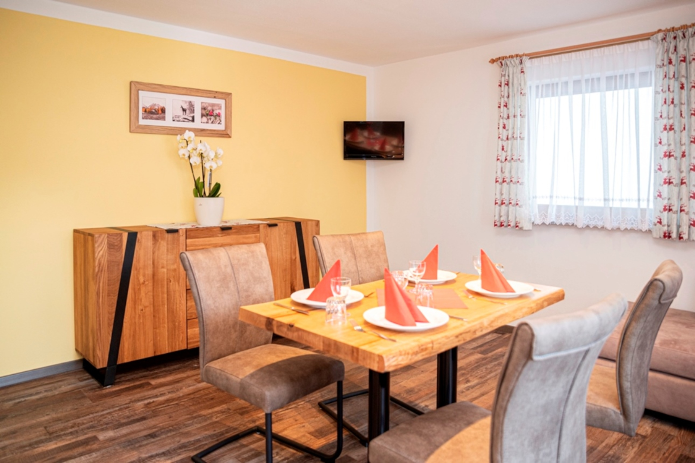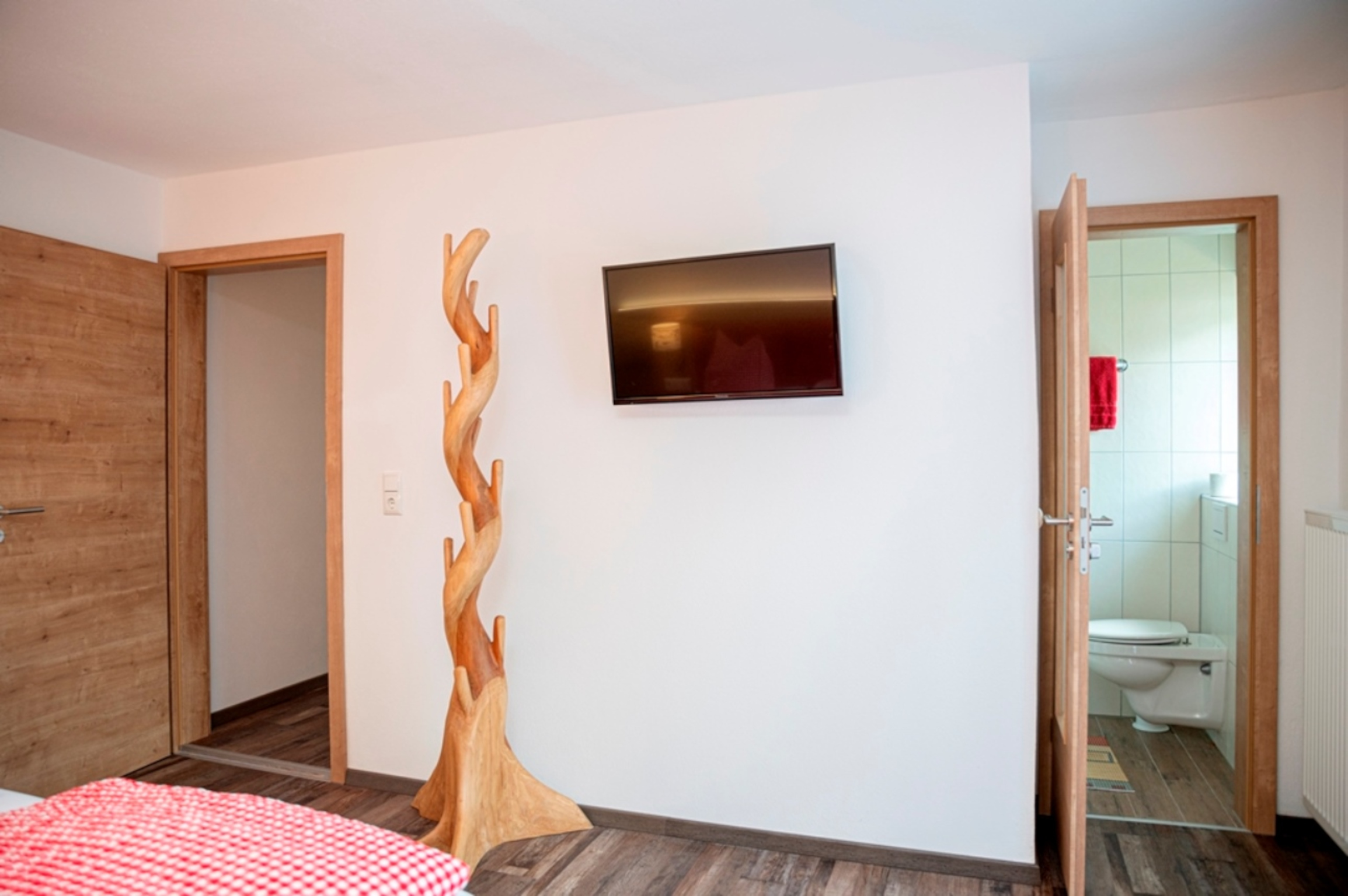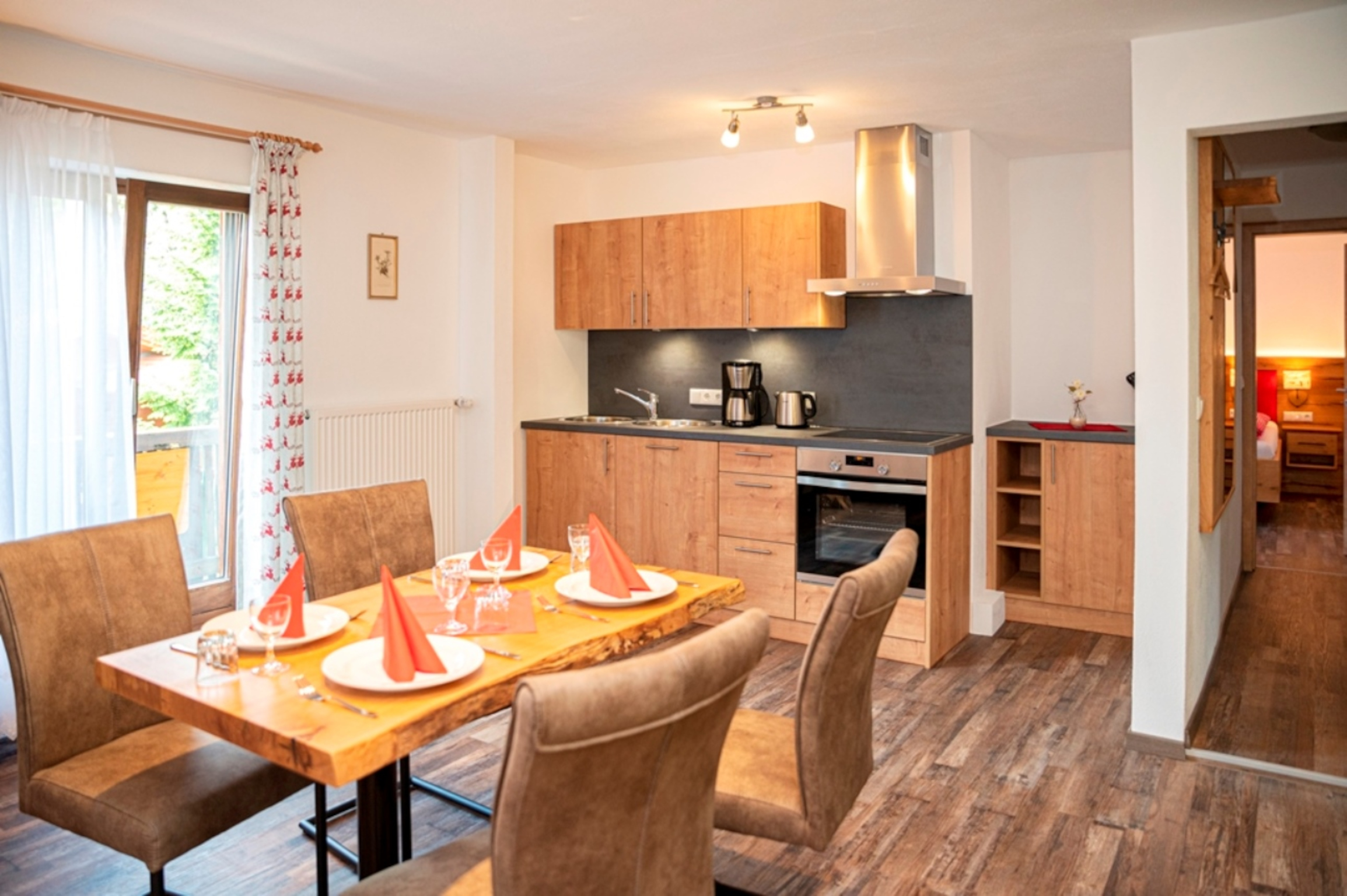 Ca. 40 qm, getrennten Wohn/Schlafraum, Bad mit Dusche/WC, Balkon mit Bergblick, Küchhenzeile mit Kochutensilien, Backofen, Kochplatte, Kühlschrank, Kaffeemaschine, Wasserkocher und Geschirrspüler, 2 Flachbild TV, Radio, Esstisch. Auf Wunsch Frühstück und Halbpension im Haus, Bettwäsche und Handtücher, kostenfreies WLAN. Waschmaschine und Wäschetrockner können gegen Gebühr benutzt werden.