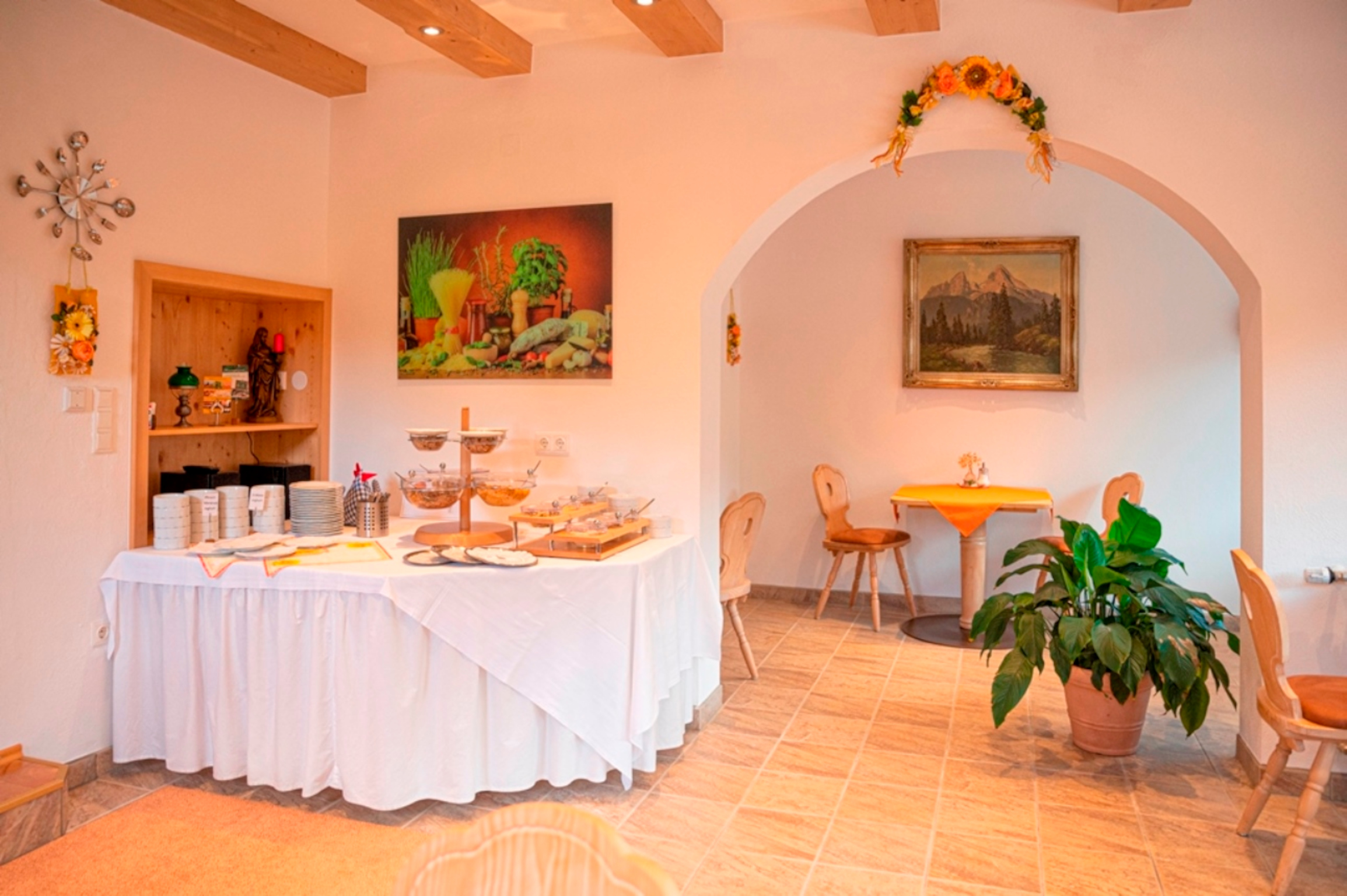 Eingebettet in die atemberaubende Bergkulisse der Berchtesgadener Alpen, nahe des sagenumwobenen Königssees, liegt unsere gemütliche Pension im Herzen von Schönau am Königssee. Genießen Sie das reichhaltige Frühstücksbuffet im angenehmen Ambiente unseres Aufenthaltsraumes mit Kachelofen.Nach einem erlebnisreichen Tag in Schönau können Sie hier mit unserem schmackhaften3-Gänge-Menü (Halbpension) neue Kräfte tanken. Solarium im Haus.Von hier aus können Sie wunderschöne Ausflüge in die nähere und weitere Umgebung machen.Zum Beispiel zu Fuß an den Königssee in nur 30 Gehminuten, mit dem Auto in fünf Minuten nach Berchtesgaden oder in 30 Minuten in die Festspielstadt Salzburg.