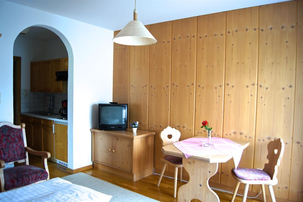 Appartement für 2 Personen: Wohn-/Schlafraum, Küche, Dusche/WC, Kabel-TV, Balkon mit herrlichem Blick auf die umliegende Bergwelt. Komfortable Ausstattung, ruhige und sonnige Lage.