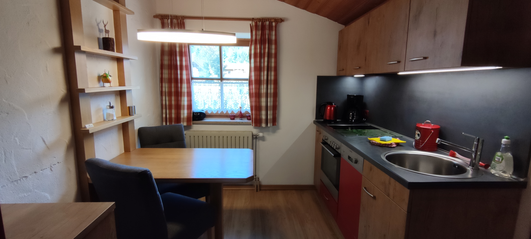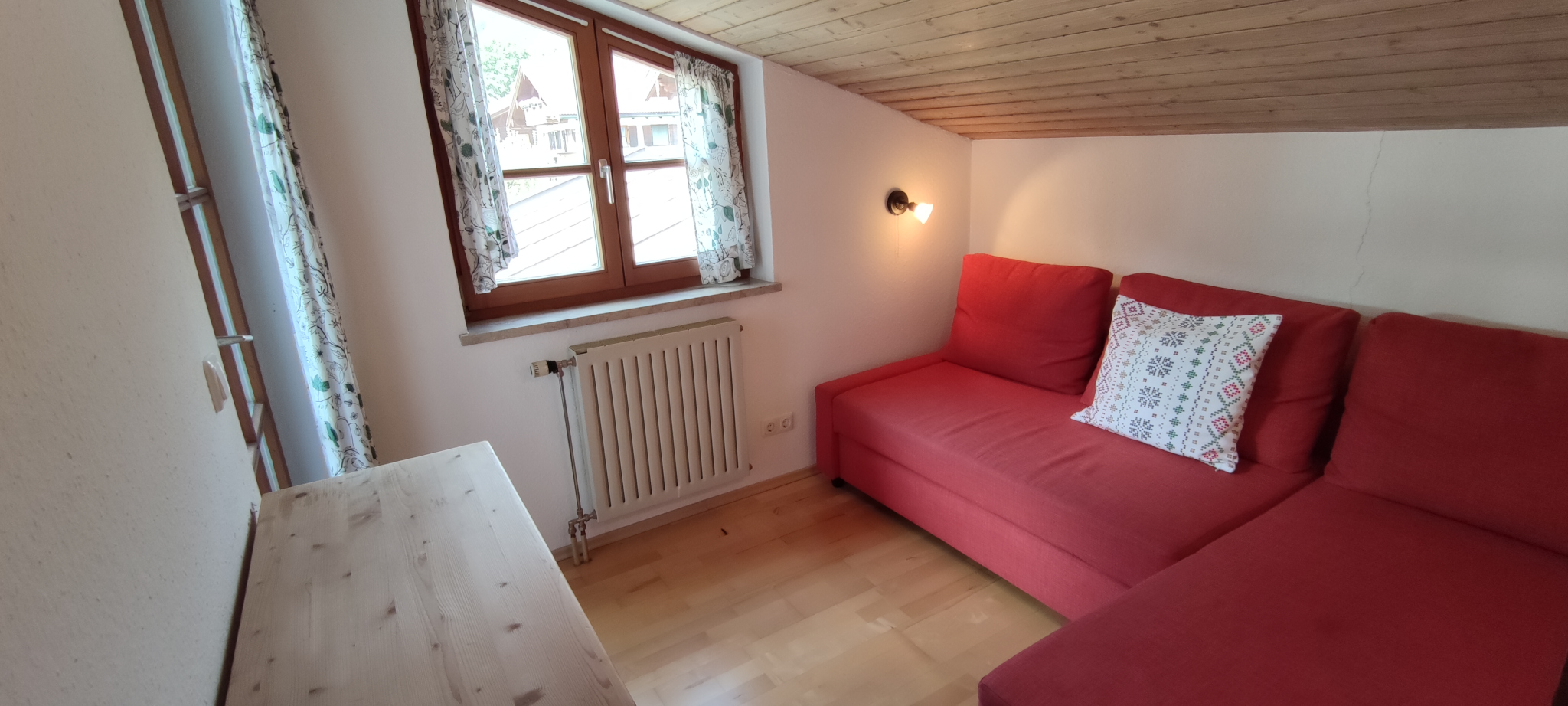 Die Ferienwohnung 1 befindet sich im Obergeschoss und bietet Platz auf 40 qm. Sie ist ausgestattet mit einem separaten Schlafzimmer, einer Küche (Herd, Backofen, Kühlschrank, Spülmaschine, Kaffeemaschine, Wasserkocher und Toaster) mit Essecke, einem Wohnzimmer mit Schlafsofa, TV, WLAN, einem Bad mit Dusche/WC und zwei Balkonen mit wunderbarem Bergblick. Unser Haus ist auch gut mit Bus und Bahn zu erreichen. Die Bushaltestelle Klinikum ist nur ca. 200 Meter entfernt. Direkt beim Haus stehen Ihnen Parkplätze zur Verfügung.