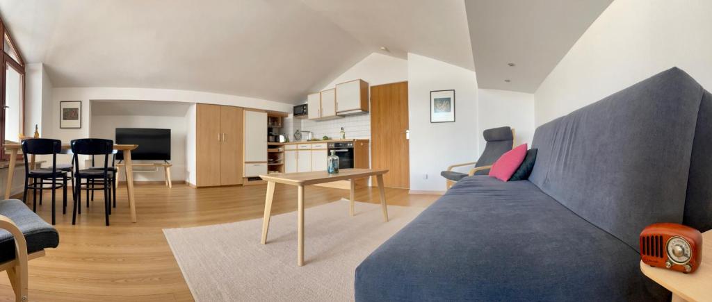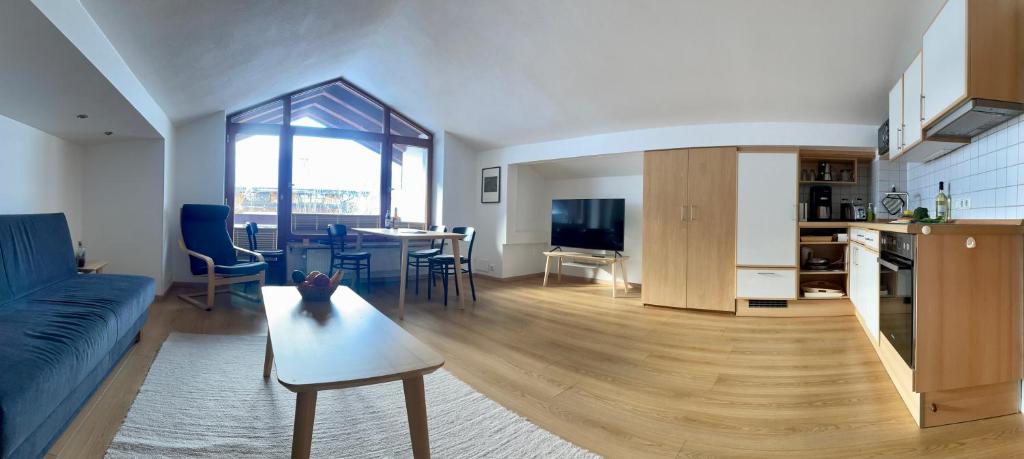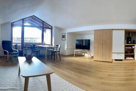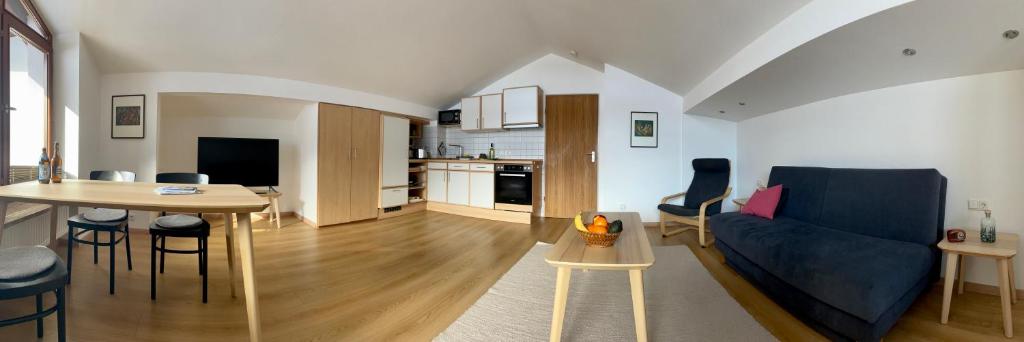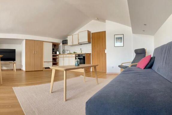 Diese Ferienwohnung hat 46 qm und liegt im 2. Obergeschoß unter dem Dach nach Westen mit raumhoher Fensterfront. Die Wohnung wurde Ende 2018 komplett renoviert: neues Bad, neuer Parkettboden, neue Möbel. Sie besteht aus Wohnraum mit extra großer Schlafcouch (180x 200) und einem seperatem Schlafzimmer. Ausgestattet mit Küchenzeile, Geschirrspüler, Herd mit 4 Kochplatten, Backofen, Dunstabzug, Kühlschrank mit Gefrierfach und diverse Küchengeräte. Seperates WC und Bad mit Tageslicht (Deckenoberlicht). Der geräumige Westbalkon mit Sitzgarnitur und Liegestühlen ist ein idealer Platz zum Ausruhen, wenn man müde von diversen Ausflügen zurückkommt.